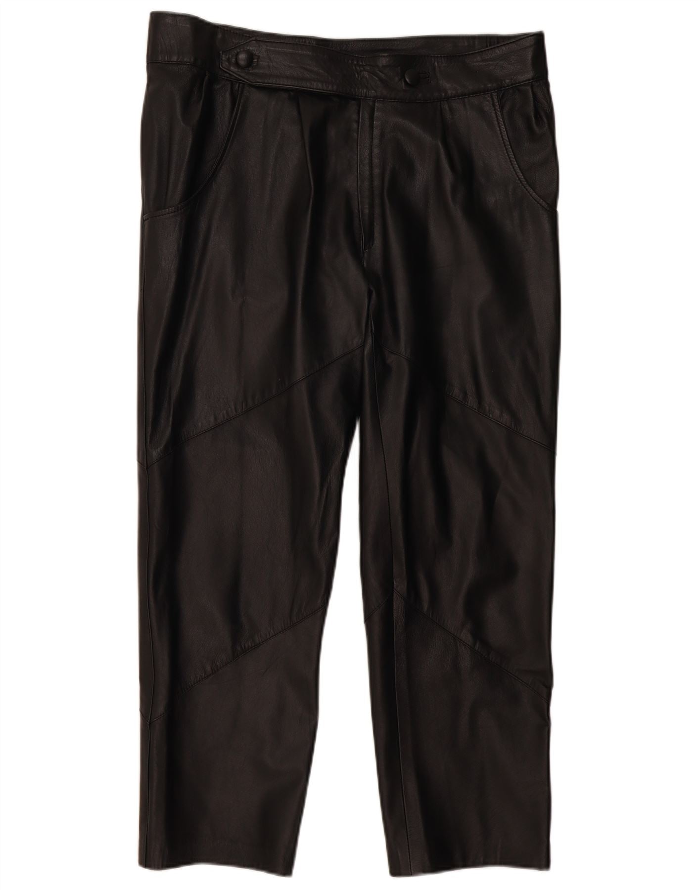 VINTAGE Γυναικείο ίσιο δερμάτινο παντελόνι IT 50 Large W38 L29 Μαύρο