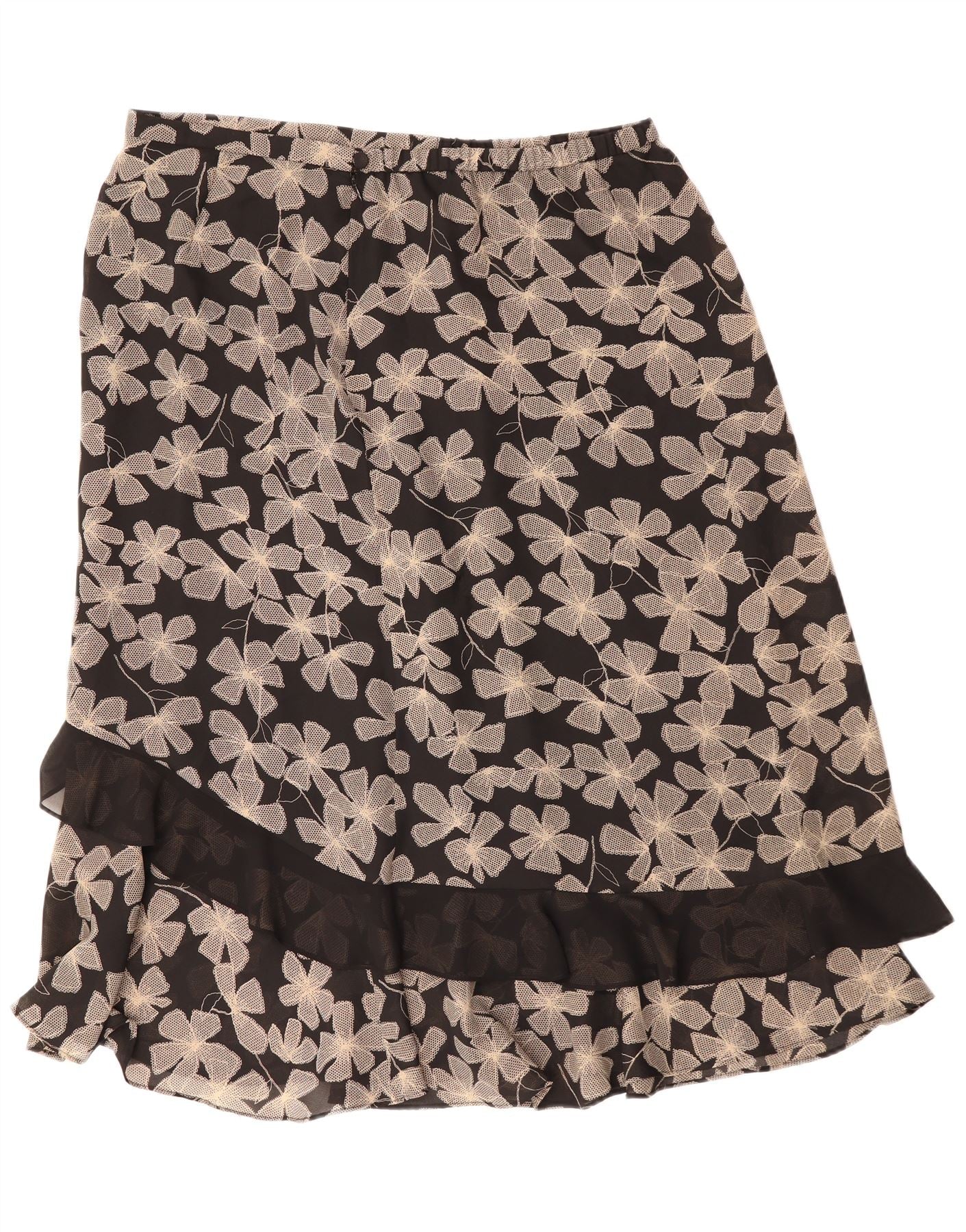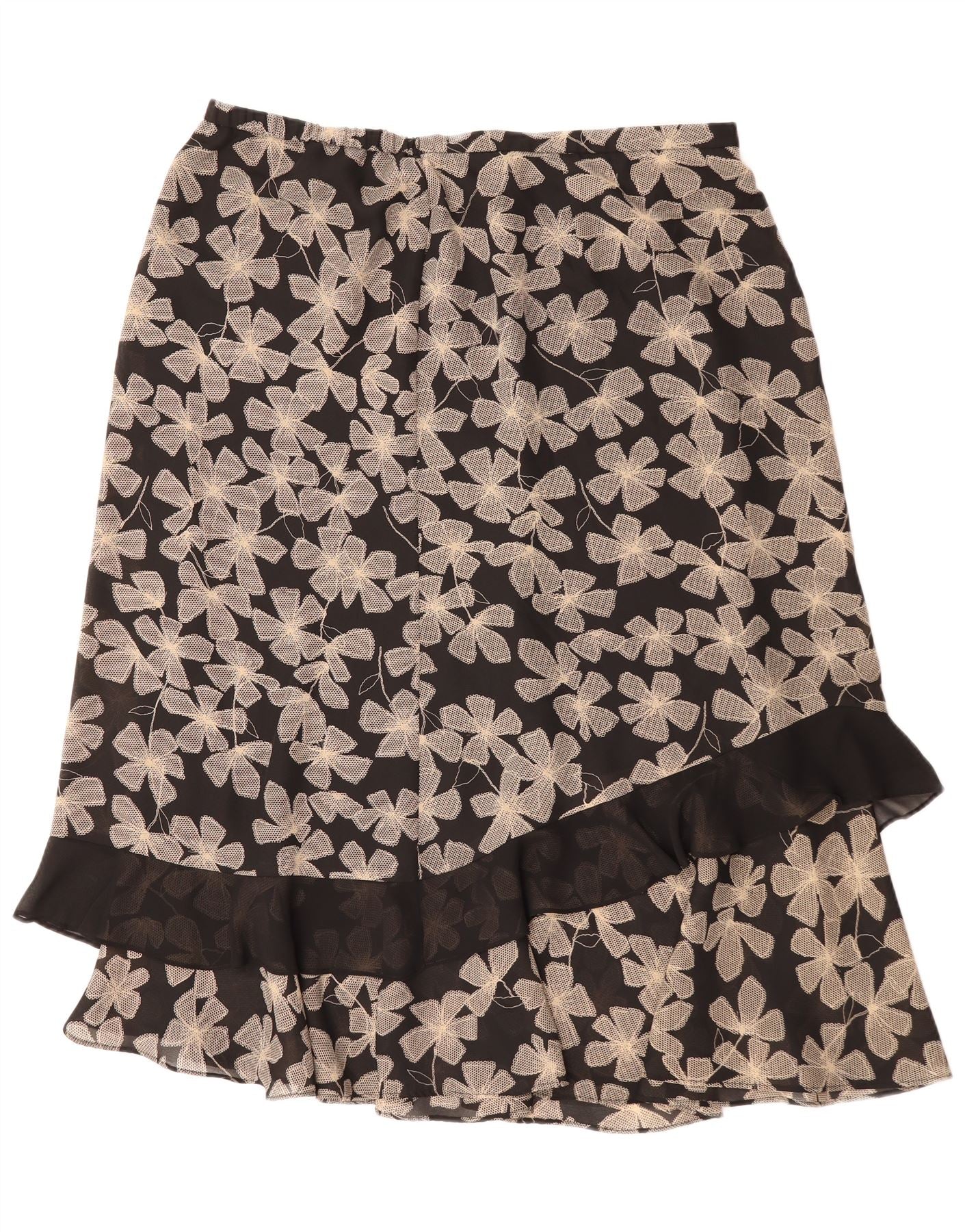 Vintage γυναικεία ίσια φούστα UK 22 3XL W40 Μαύρος φλοράλ πολυεστέρας