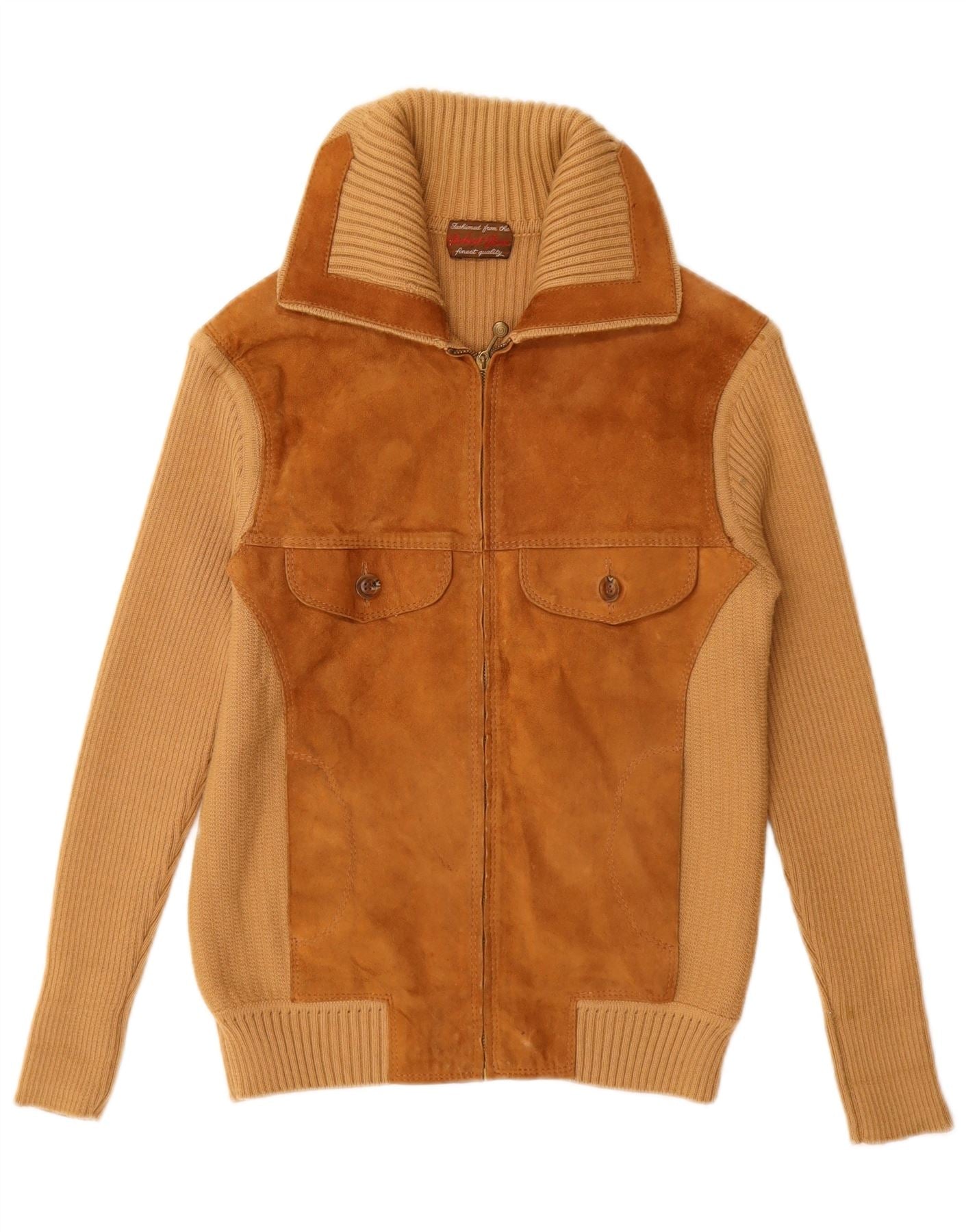 Γυναικείο σουέτ ζακέτα VINTAGE UK 12 μεσαίου μπεζ χρώματος