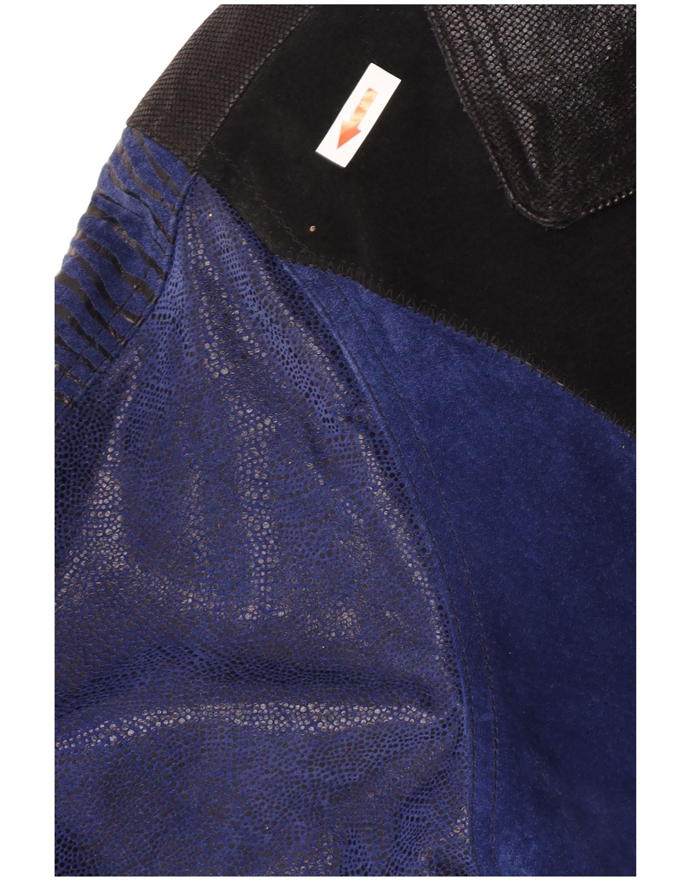 Vintage γυναικείο σουέτ πανωφόρι UK 12 Medium Blue Colourblock Δέρμα