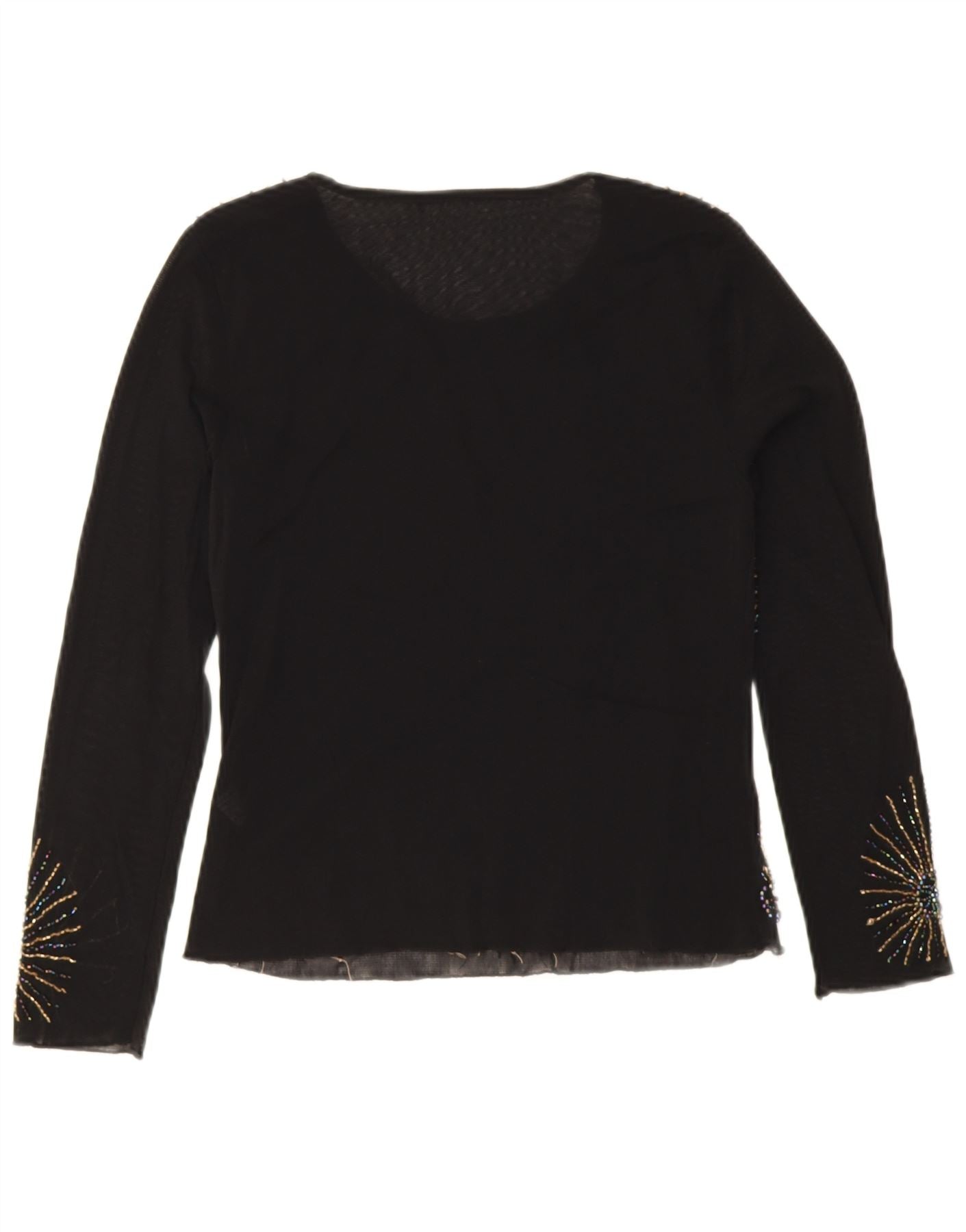 Vintage γυναικείο τοπ μακρυμάνικο UK 10 Small Black Floral Viscose