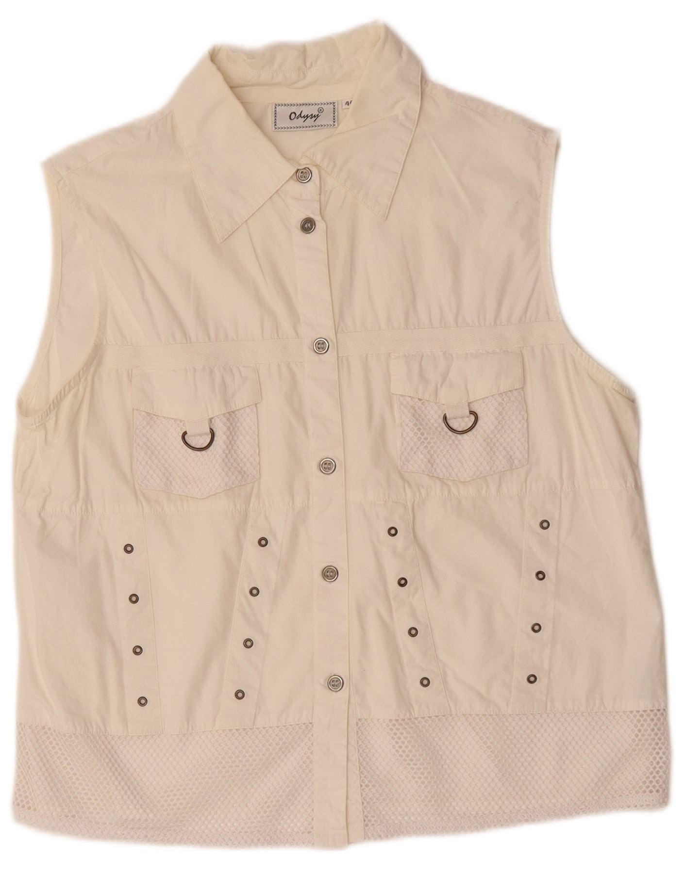 VINTAGE Γυναικείο Βοηθητικό Gilet IT 44 Μεσαίο Λευκό Βαμβακερό
