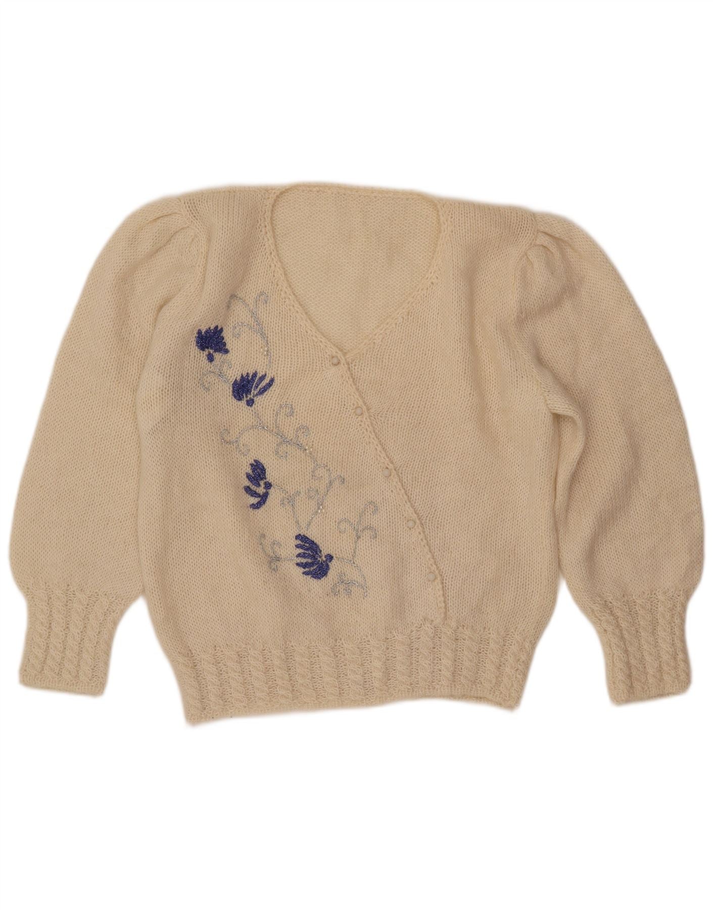 VINTAGE Γυναικείο πουλόβερ με V λαιμόκοψη UK 16 Large Off White Floral