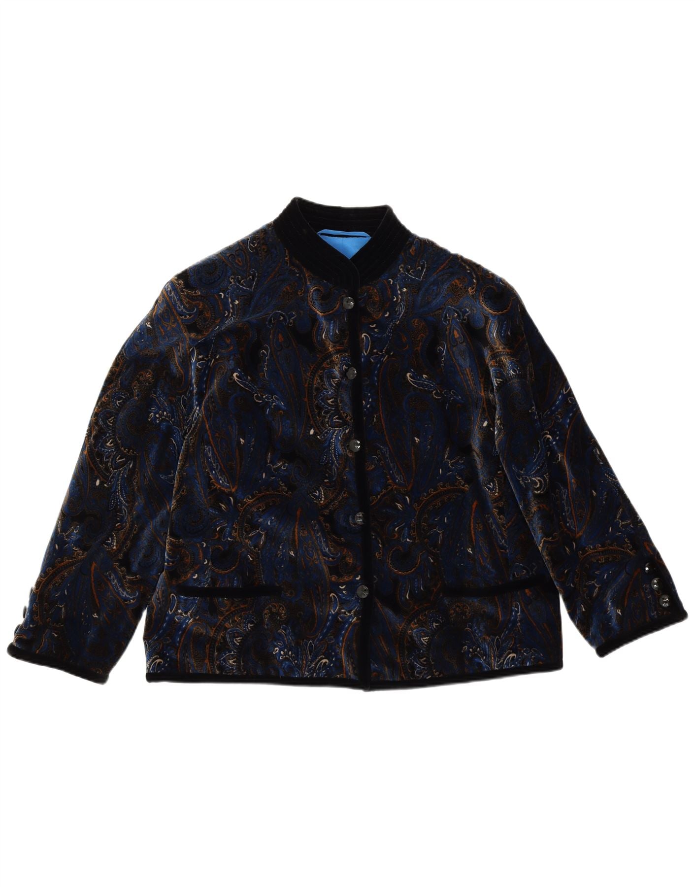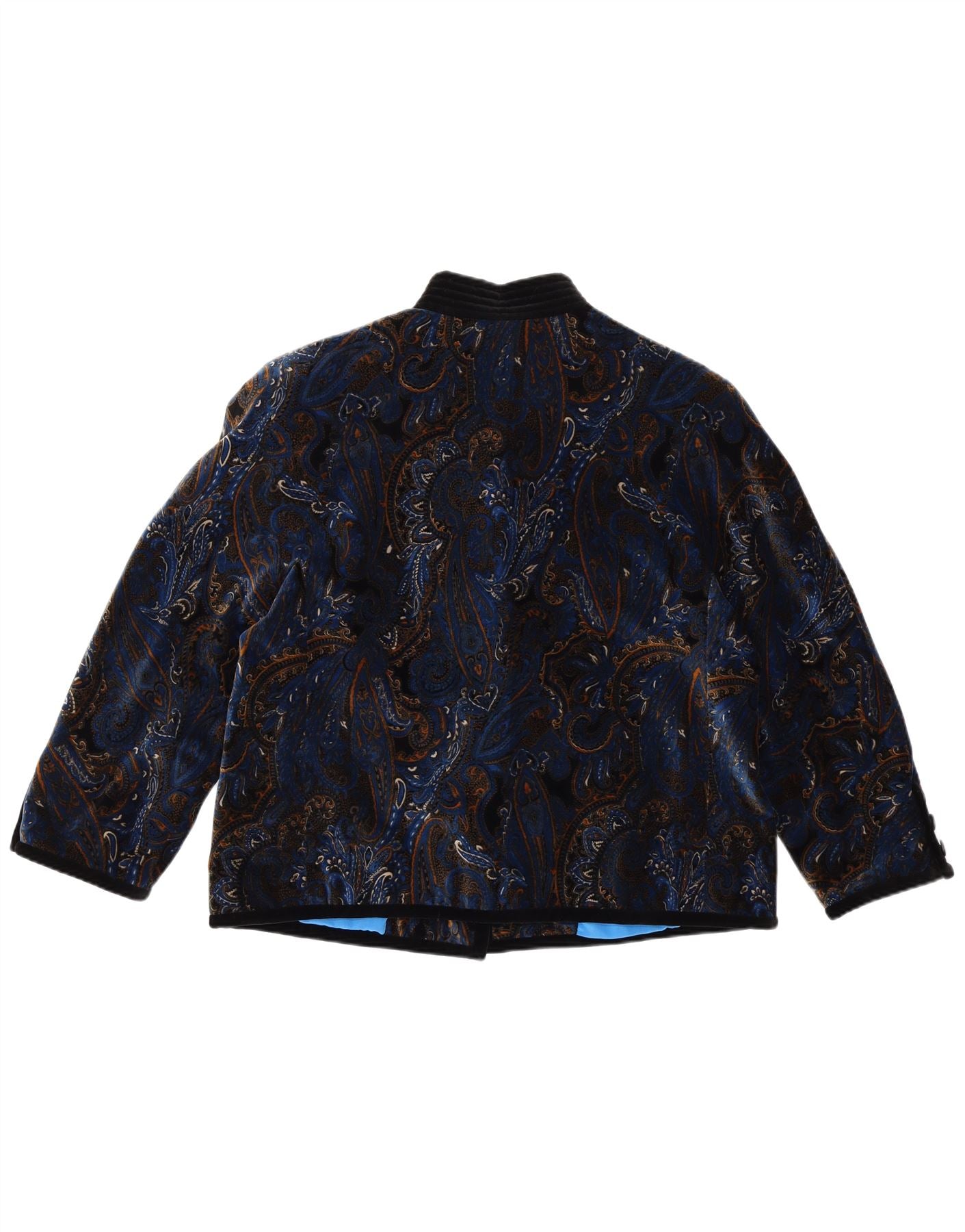 VINTAGE Γυναικείο βελούδινο σακάκι με 5 κουμπιά σακάκι UK 14 μεγάλο μπλε Paisley