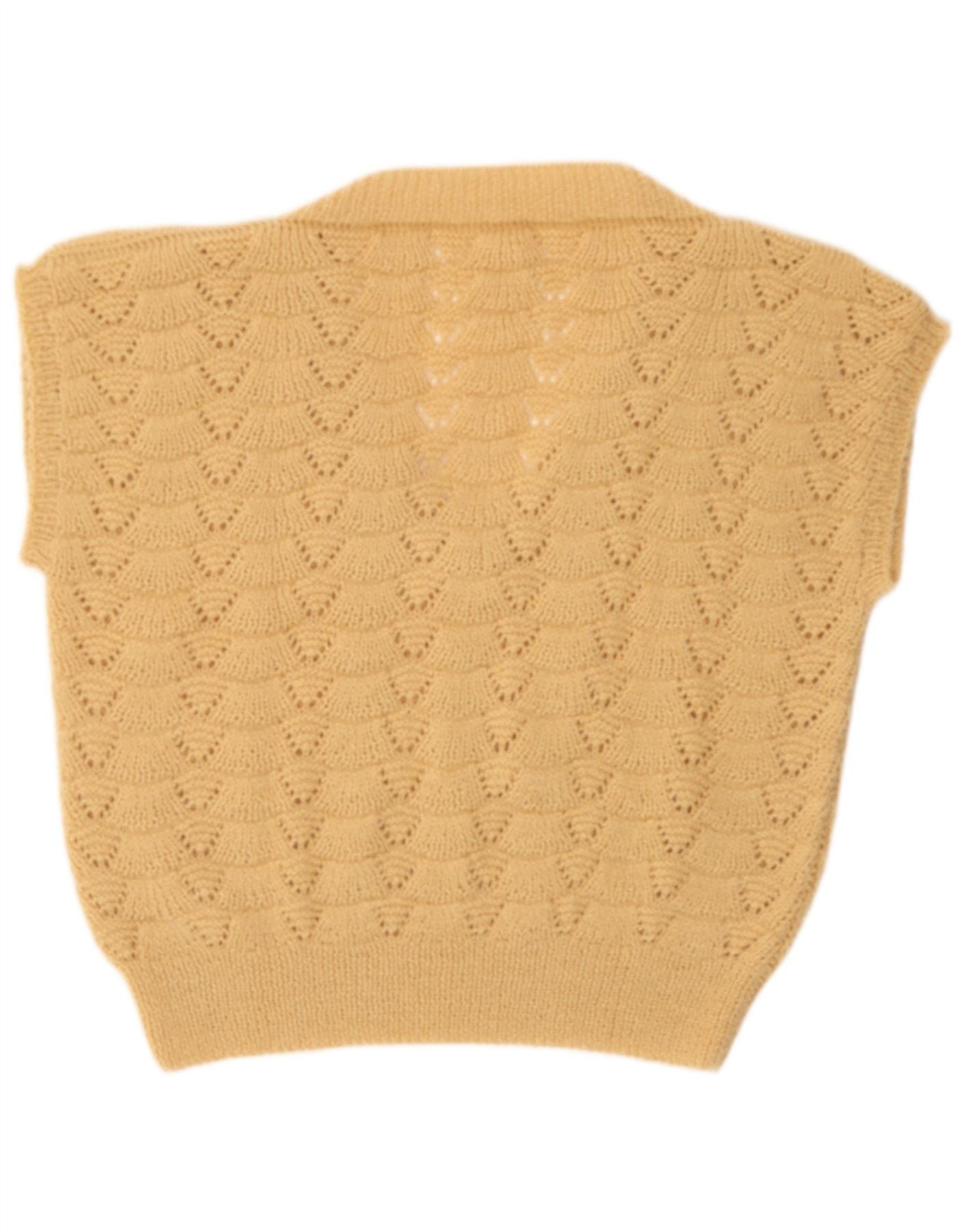 - Περιγραφή AI: Αυτό το φανελάκι Vintage γυναικείο γιλέκο είναι φτιαγμένο από ελαφρύ μπεζ πλεκτό ύφασμα. Διαθέτει κλασική λαιμόκοψη σε σχήμα V και αμάνικο σχέδιο. Το ένδυμα παρουσιάζει ένα χαρακτηριστικό γεωμετρικό διάτρητο μοτίβο παντού, προσθέτοντας υφή και οπτικό ενδιαφέρον. Η κανονική εφαρμογή του εξασφαλίζει άνετη χρήση. Η αναπνεύσιμη και ελαφριά κατασκευή το καθιστά ιδανικό για layering ή πιο ζεστές μέρες. Οι λεπτές λεπτές λεπτομέρειες φινιρίζουν τις άκρες.