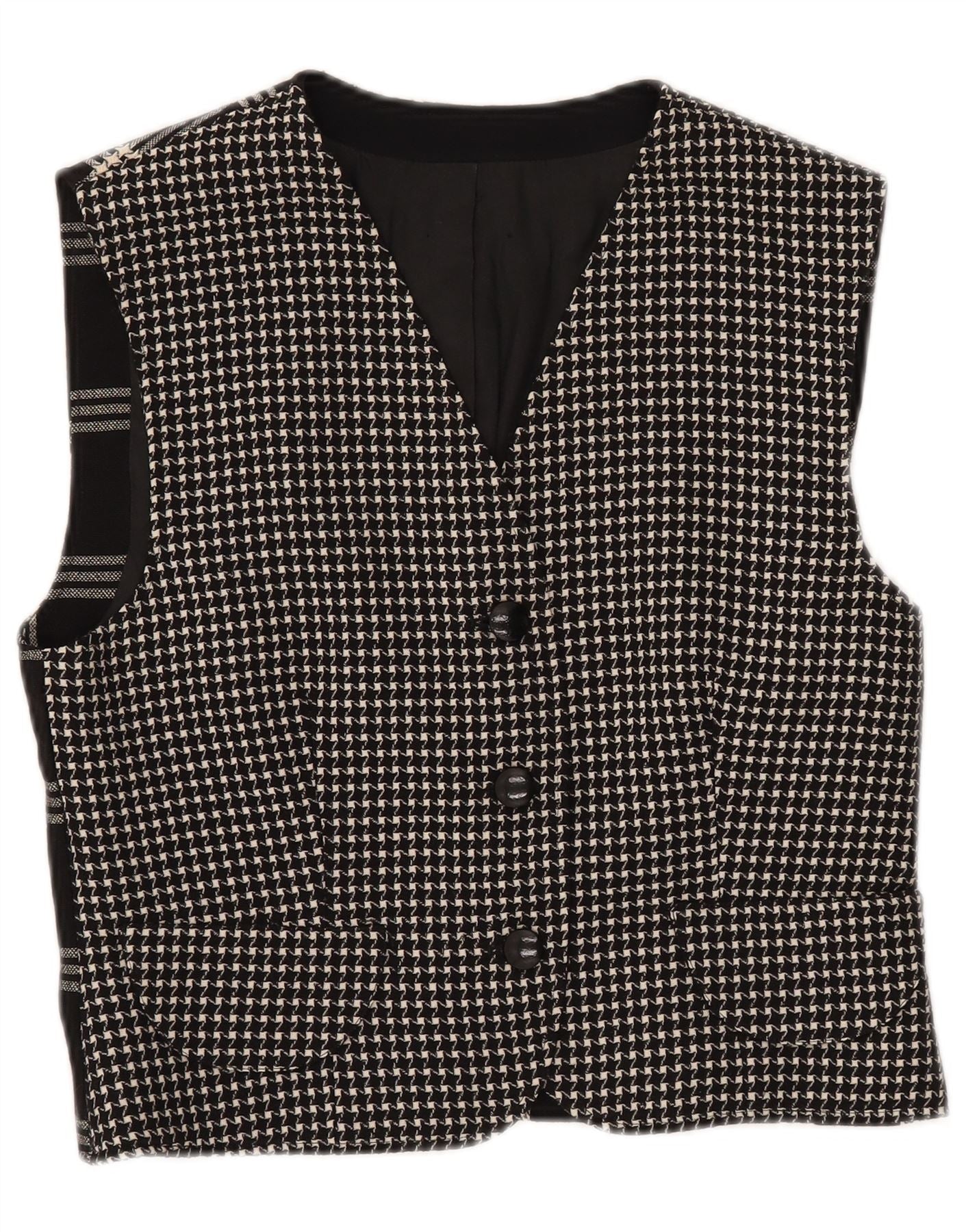VINTAGE Γυναικείο Γιλέκο UK 12 Μέτριο Μαύρο Έλεγχο