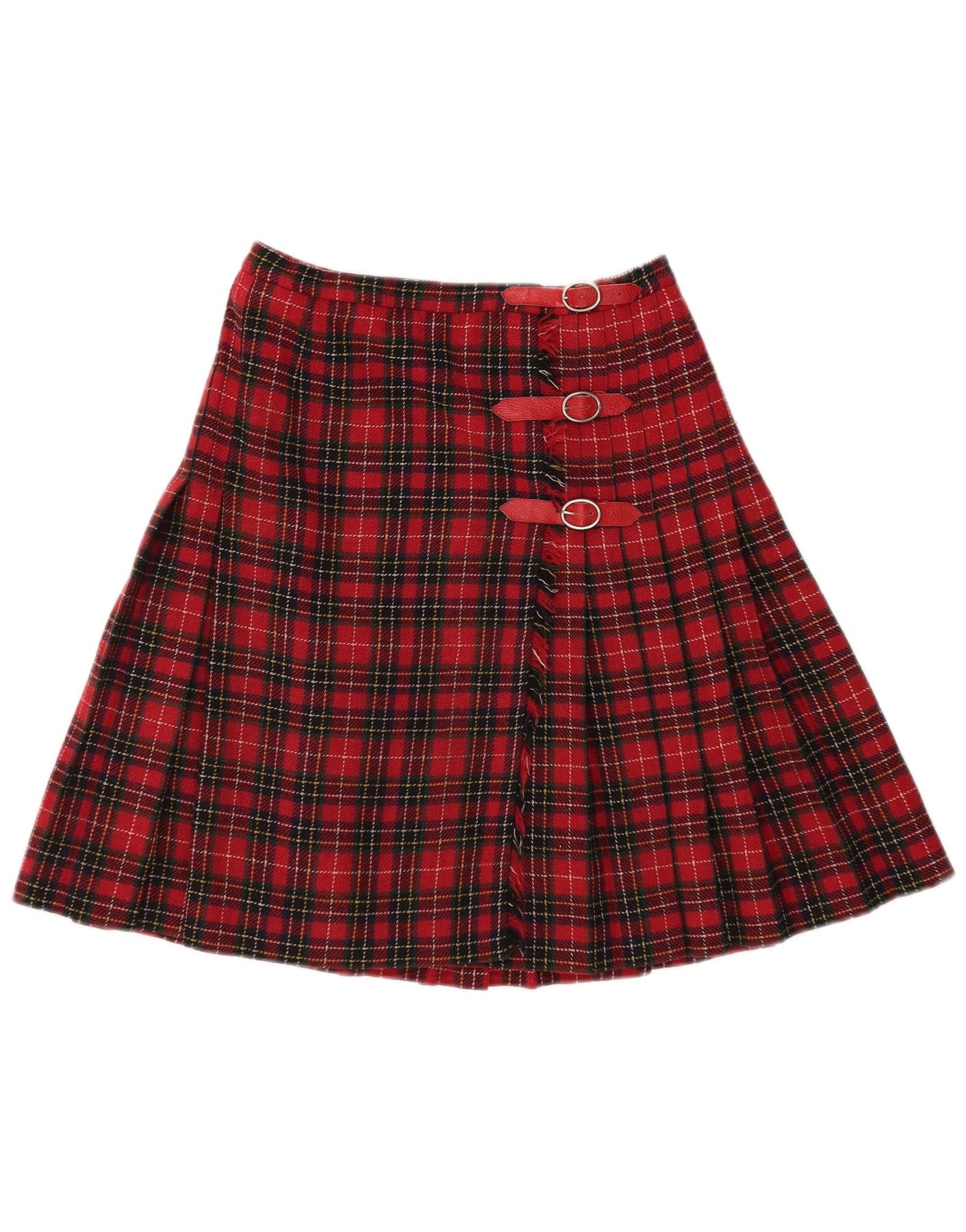 VINTAGE Γυναικεία Φούστα Πλισέ Wrap Knife W28 Μεσαίο κόκκινο καρό