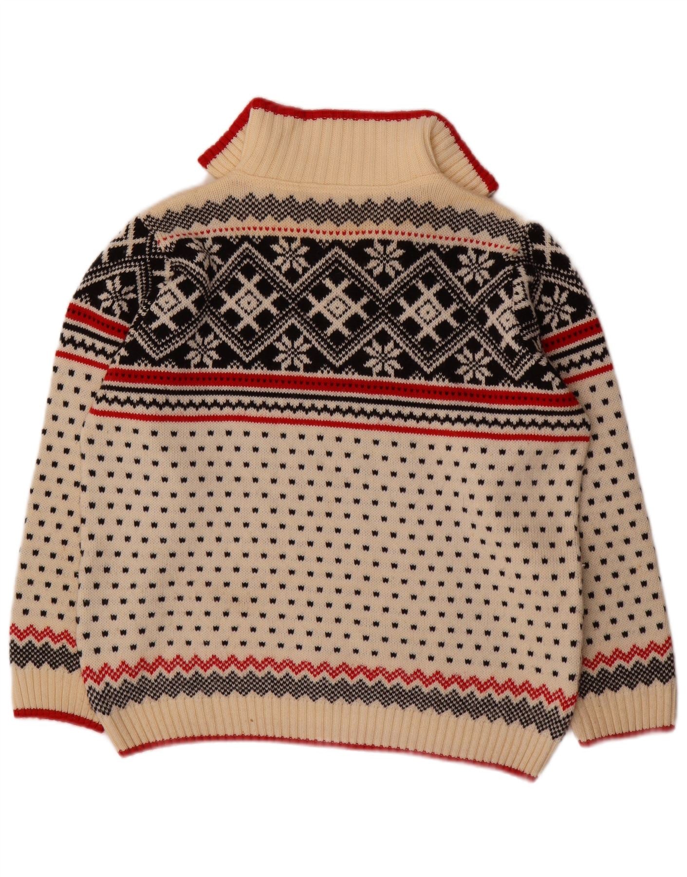 VINTAGE Γυναικείο πουλόβερ με φερμουάρ UK 16 Large Off White Fair Isle
