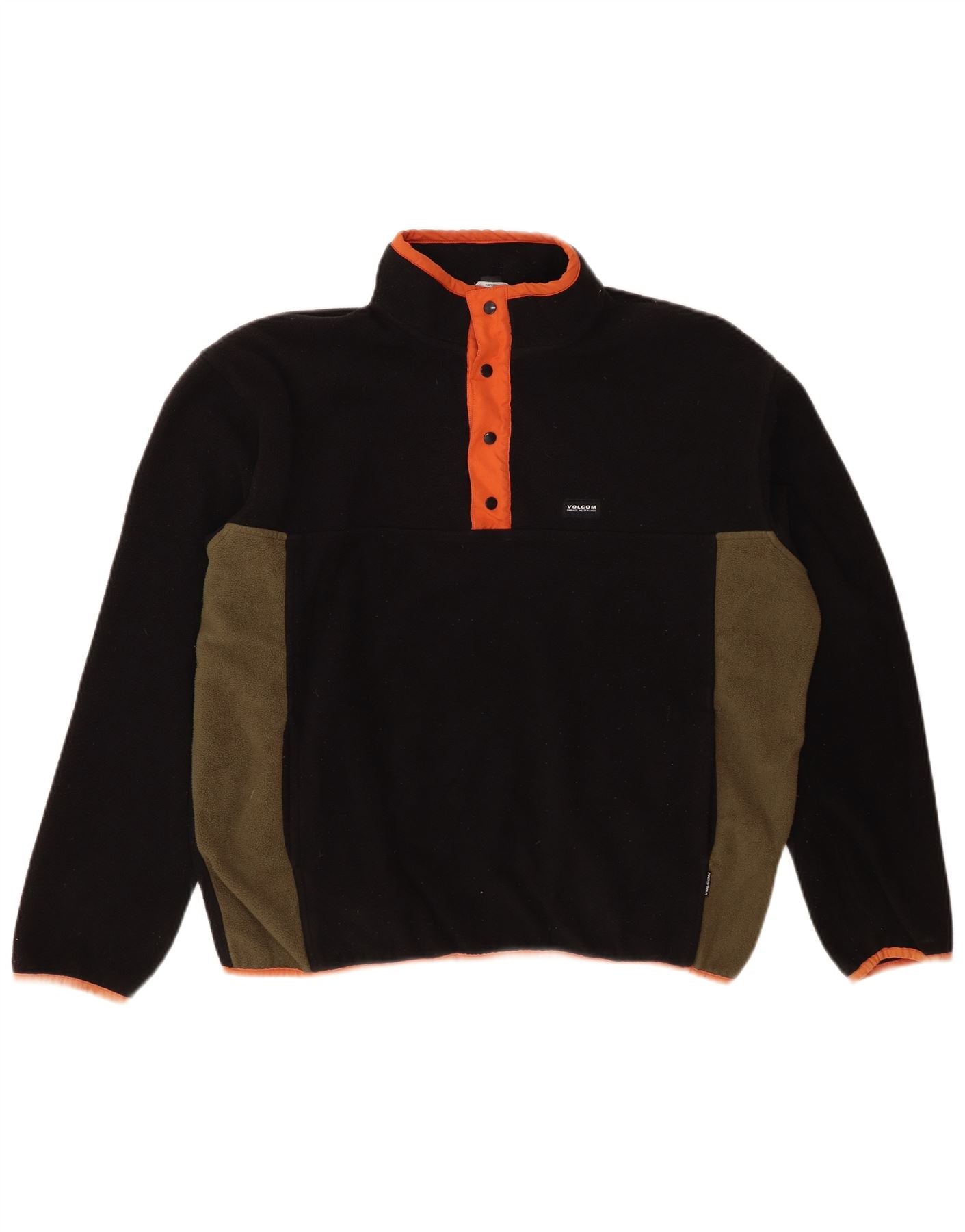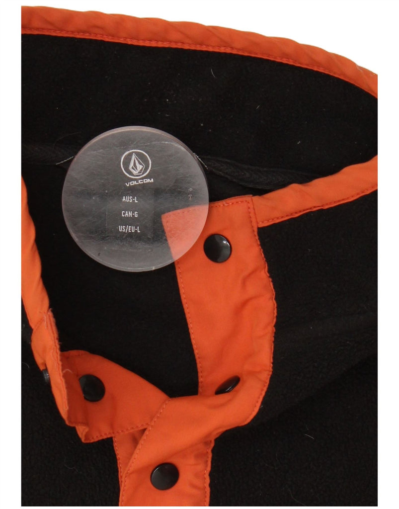 VOLCOM Mens Button Neck Fleece Jumper Large Black Colourblock Polyester