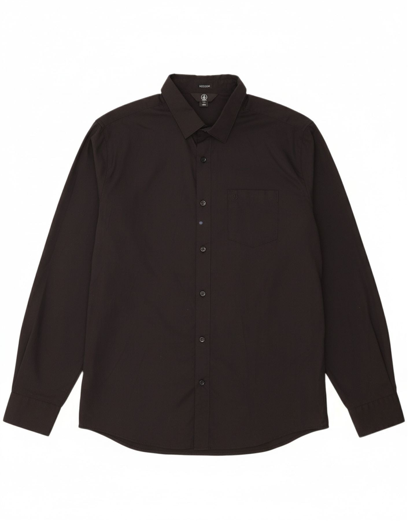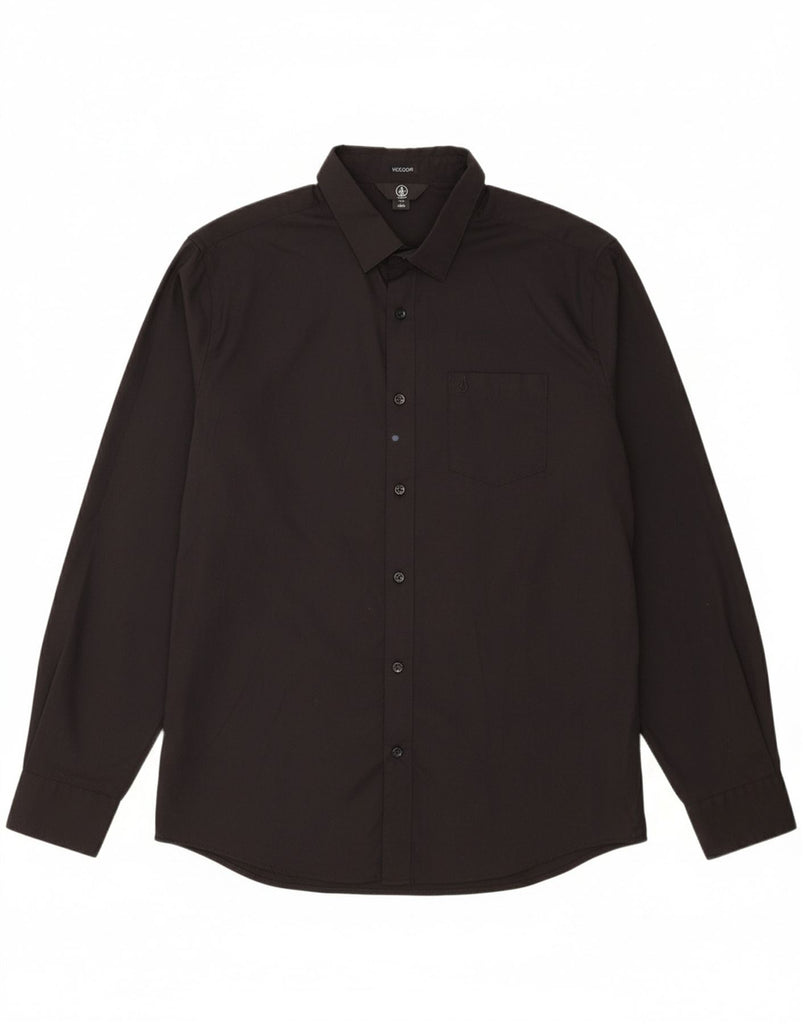 - AI Description: This Volcom mens formal shirt is crafted from a black cotton and polyester blend, offering a smooth finish. It features a classic collared neckline and a full button-up front for a refined look. Long sleeves taper to buttoned cuffs, while chest pockets add practical detail. The regular fit ensures comfortable wear, making it a versatile choice for smart occasions.