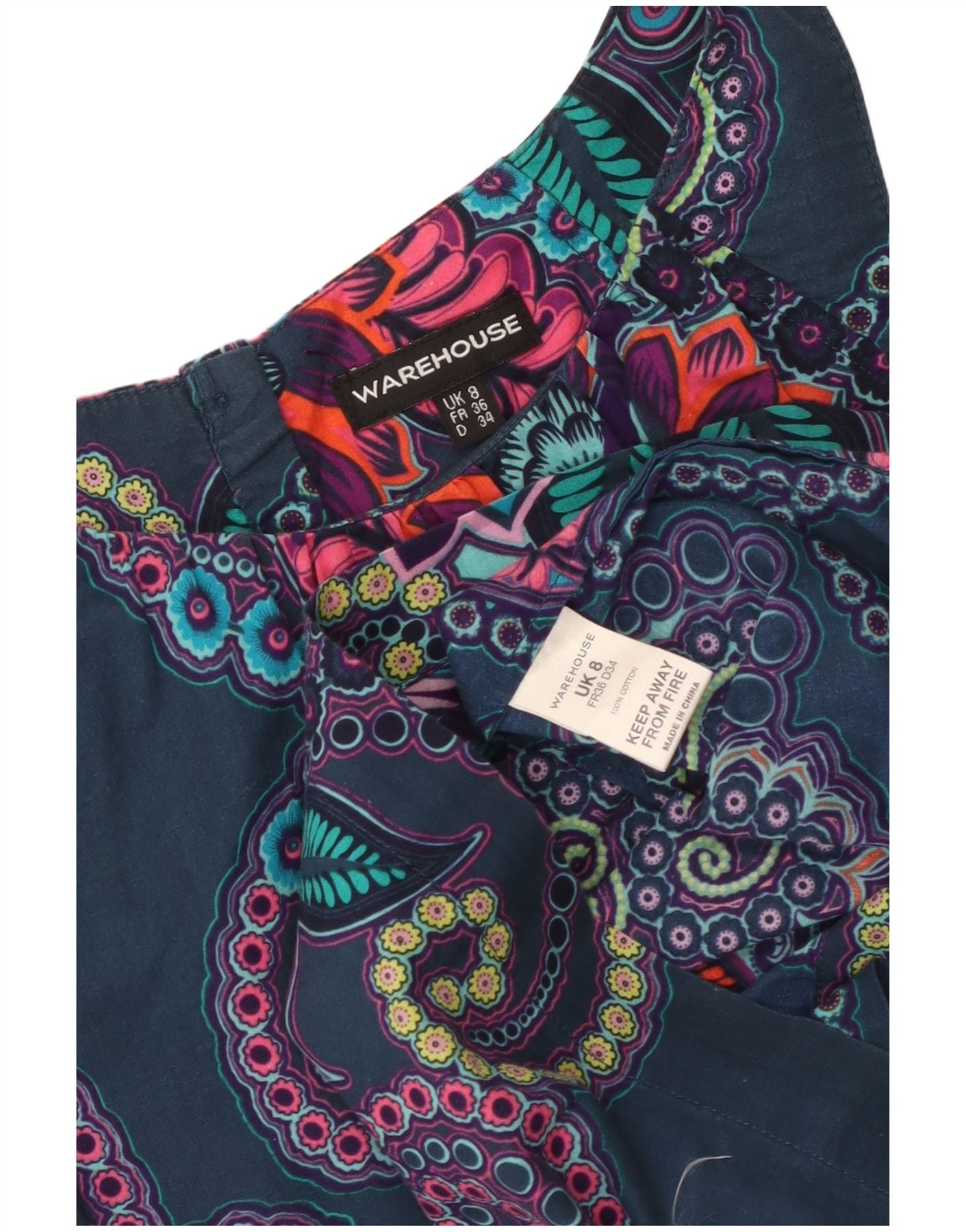 WAREHOUSE Womens Sleeveless Sheath Dress UK 8 Small Navy Blue Floral