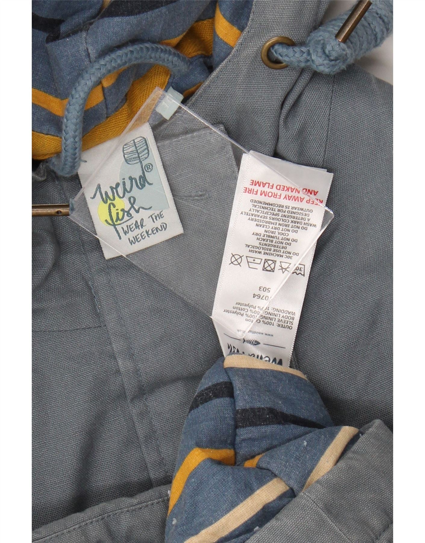 Weird Fish γυναικείο μπουφάν Parka με κουκούλα UK 10 Small Blue Cotton