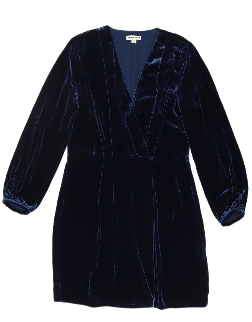 WHISTLES Womens Velvet Long Sleeve A-Line Dress UK 12 Medium Navy Blue