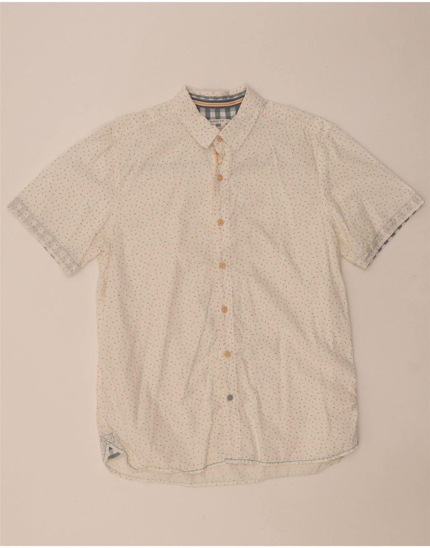 WHITE STUFF Ανδρικό κοντομάνικο πουκάμισο με κλασική εφαρμογή Μικρό λευκό βαμβακερό με στίγματα