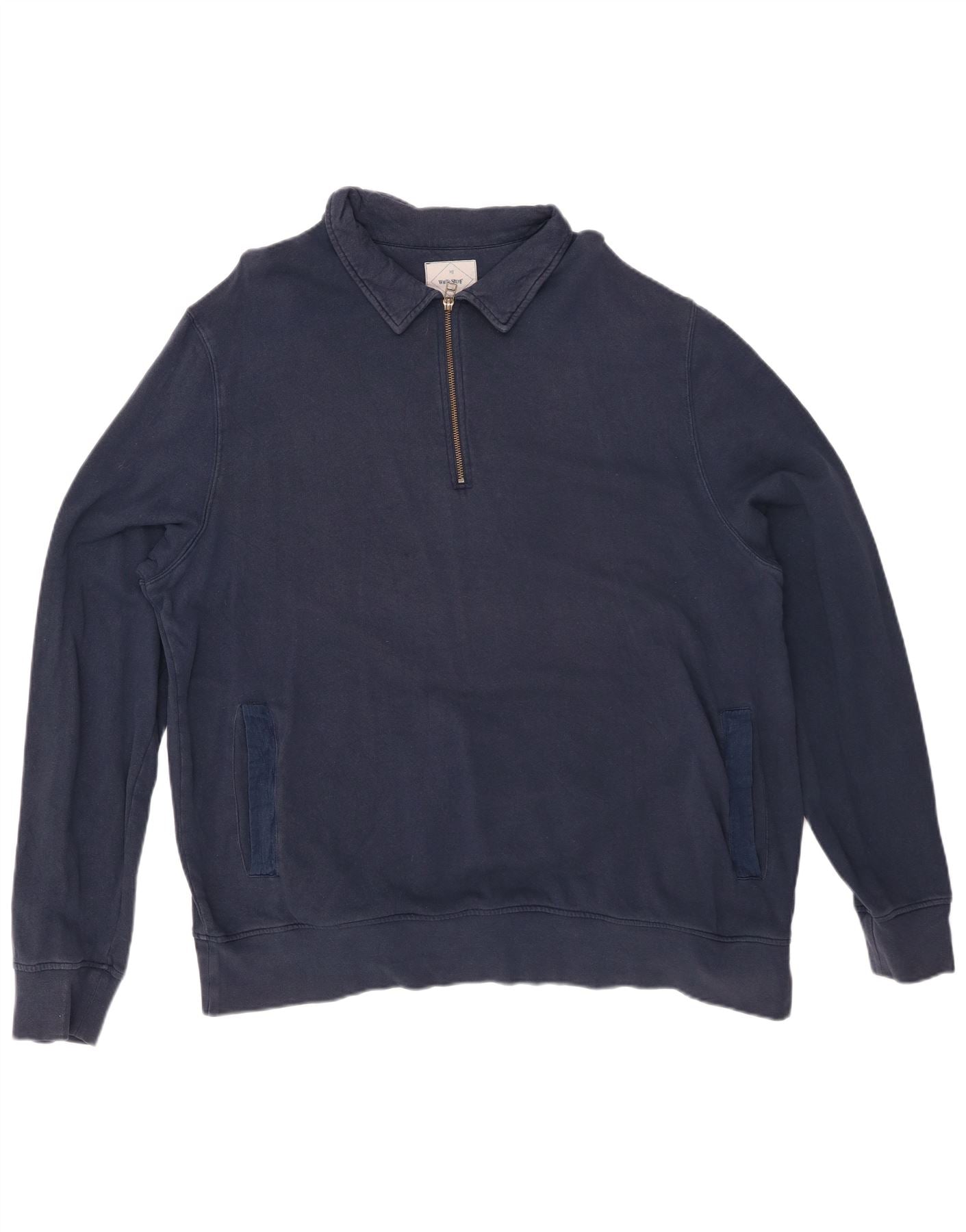 WHITE STUFF Ανδρικό φούτερ πόλο με λαιμόκοψη Jumper 2XL Navy Blue Cotton