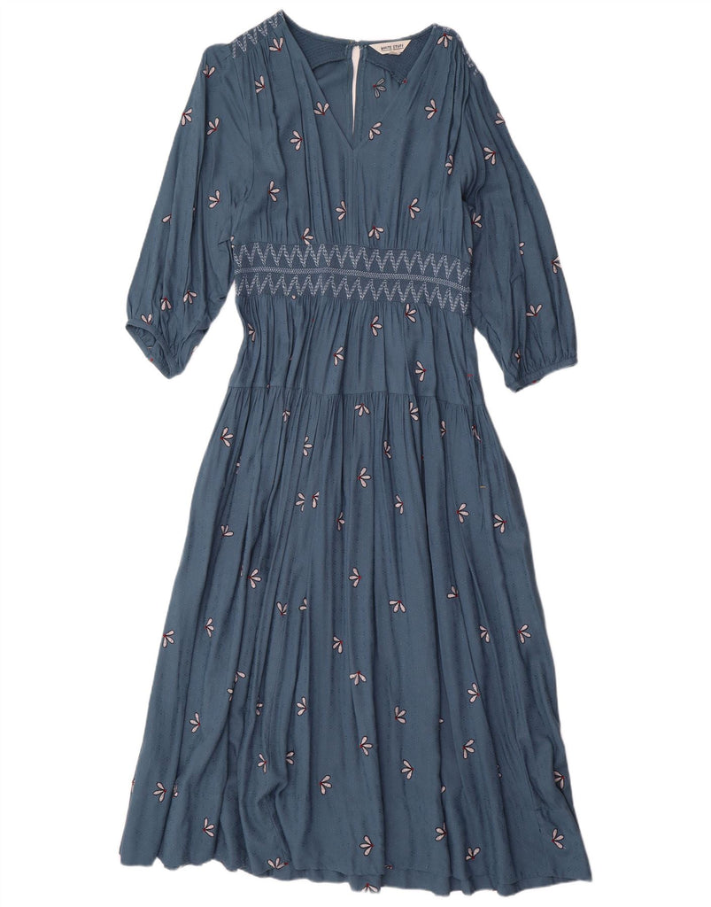 WHITE STUFF Womens 3/4 Sleeve Maxi Dress UK 8 Small Blue Floral Viscose