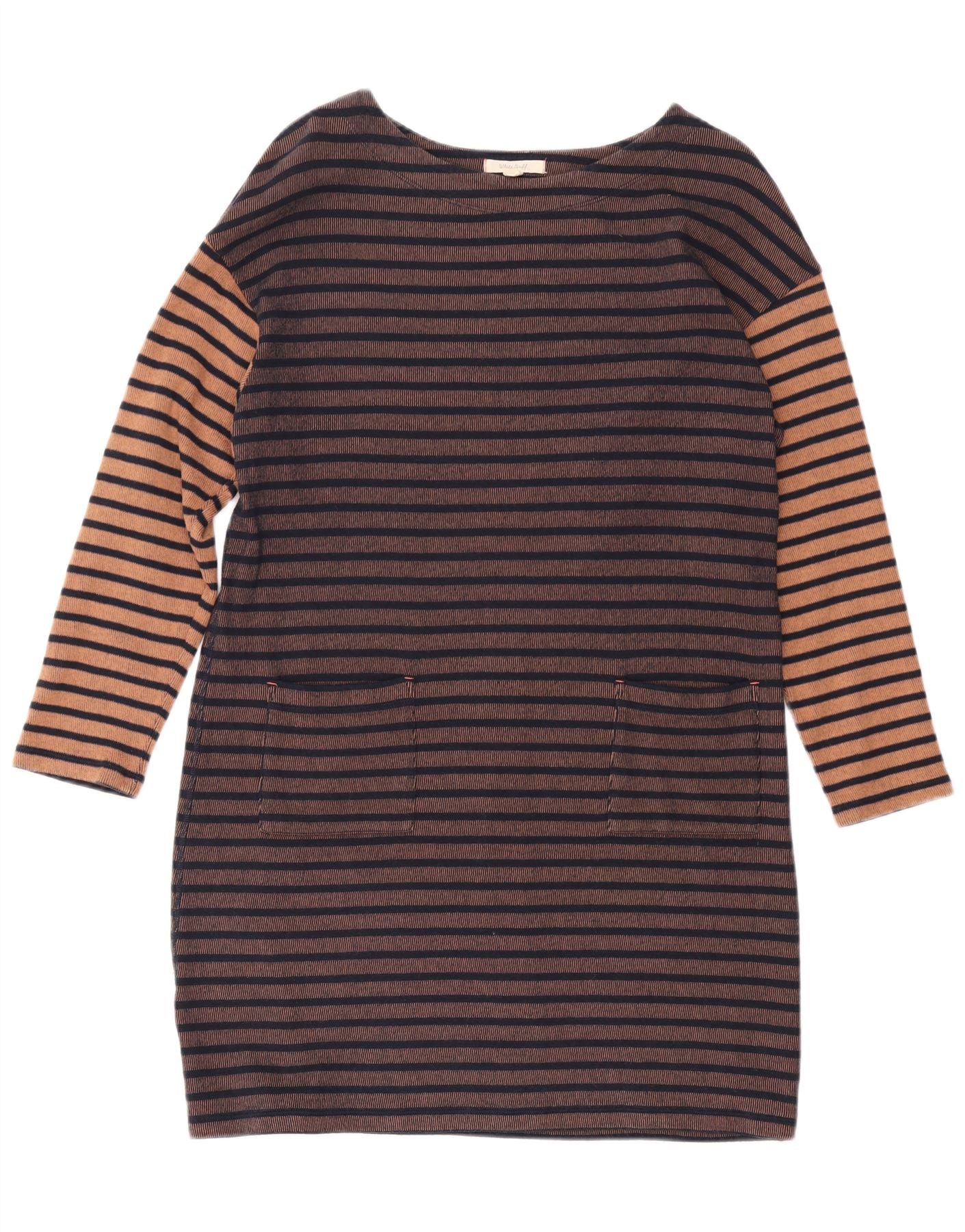 WHITE STUFF Γυναικείο μακρυμάνικο φόρεμα UK 14 μεγάλο καφέ ριγέ