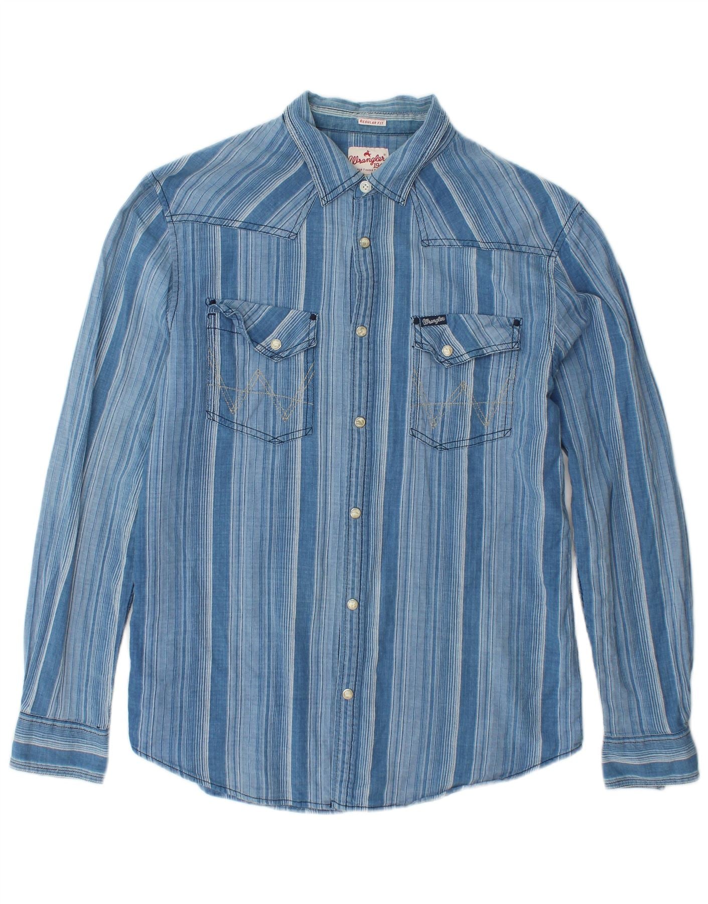 WRANGLER Ανδρικό φανελένιο πουκάμισο με κανονική εφαρμογή, μεγάλο μπλε ριγέ βαμβακερό