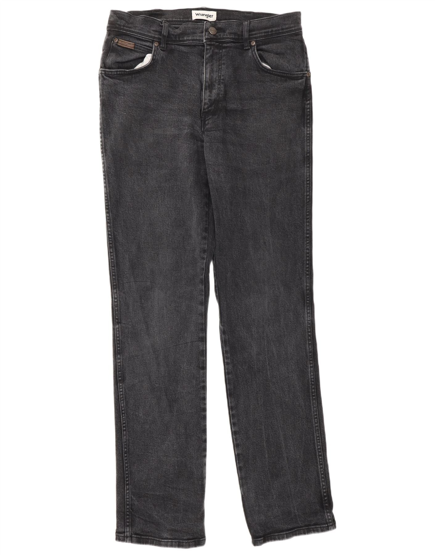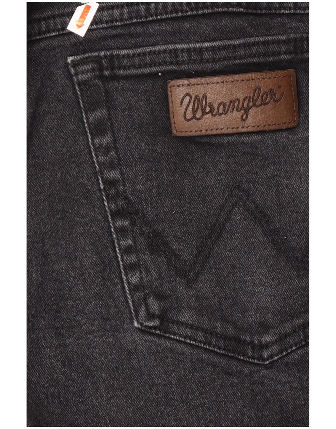- AI Description: These Wrangler mens straight jeans are crafted from black denim, offering a classic look with a comfortable stretch. They feature a regular fit through the leg for timeless appeal. The button closure ensures a secure and traditional fastening. Practical pockets provide functionality. A subtle logo accent adds a signature touch to this classic design. Designed for everyday wear, these jeans combine durability with effortless style.