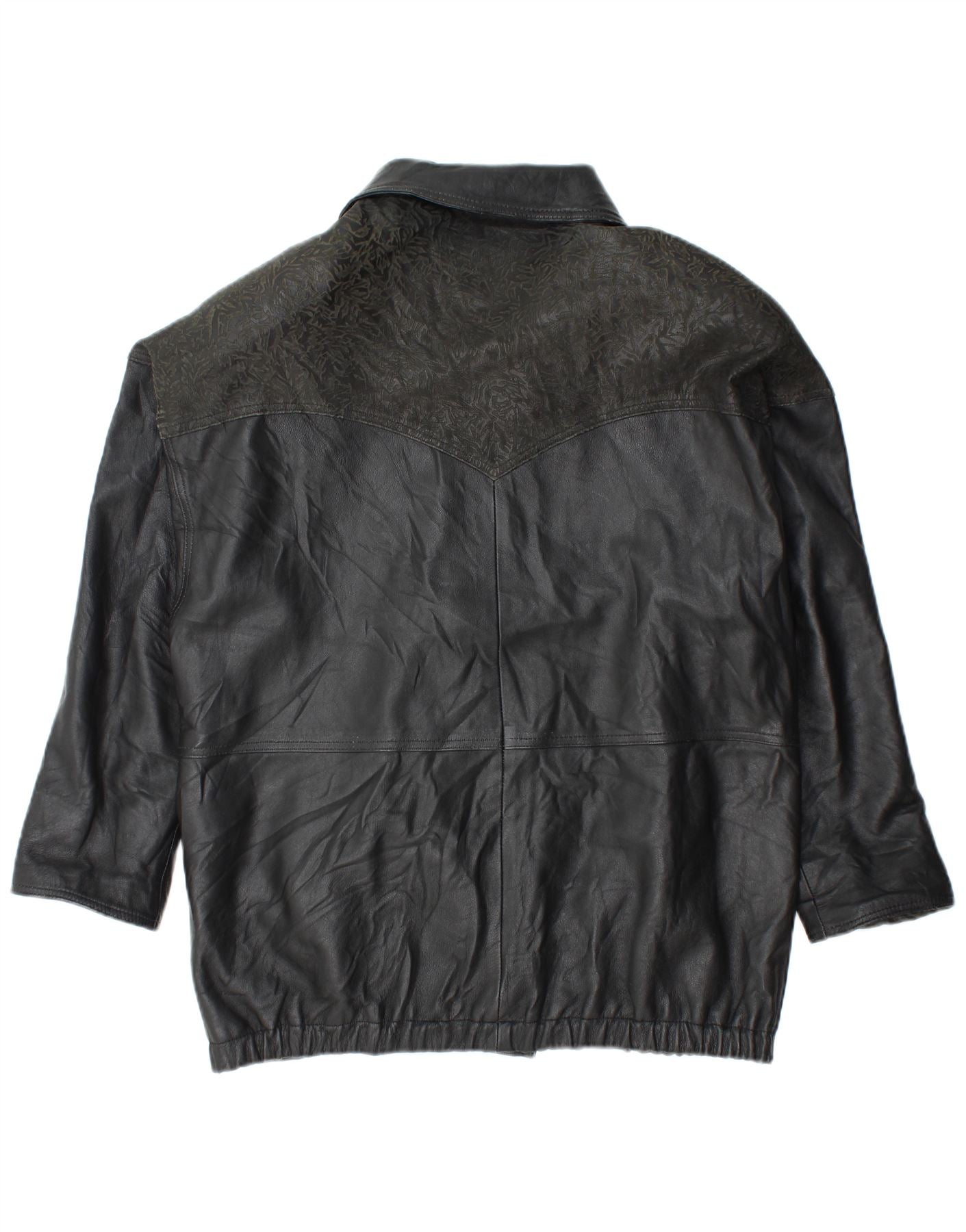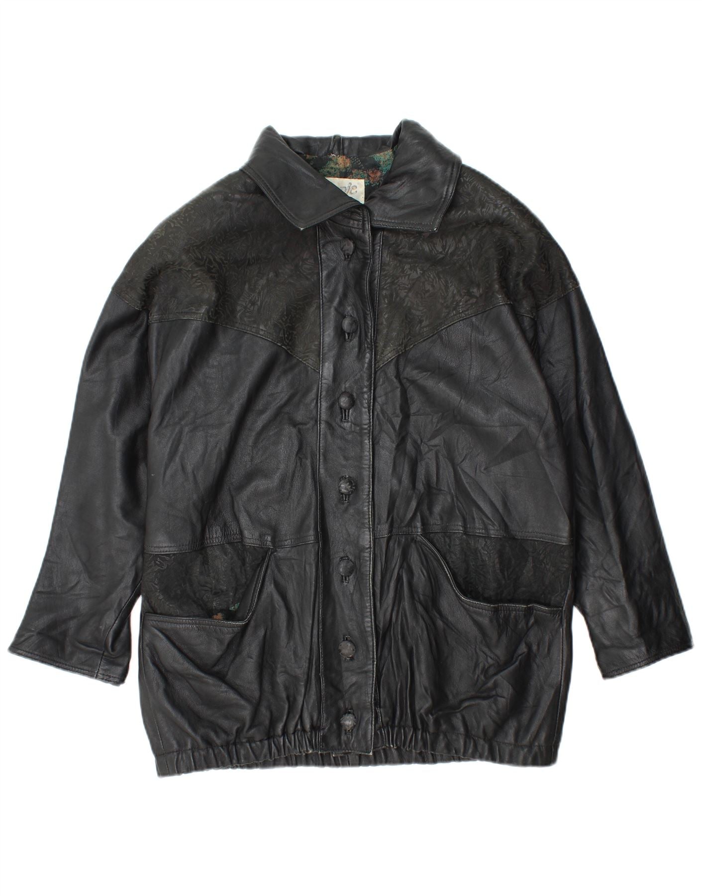YUPPIE Γυναικείο Oversized Δερμάτινο Μπουφάν UK 18 XL Μαύρο Floral