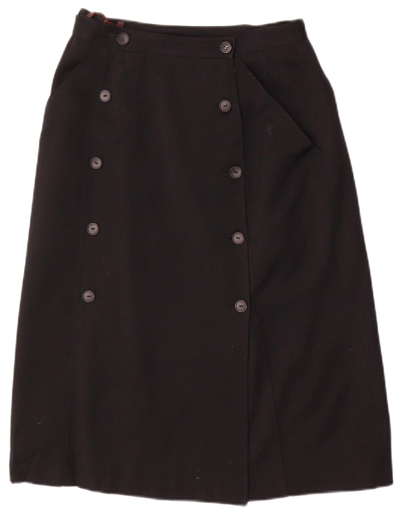 YVES SAINT LAURENT Womens A-Line Skirt EU 40 Medium W26 Black Virgin Wool