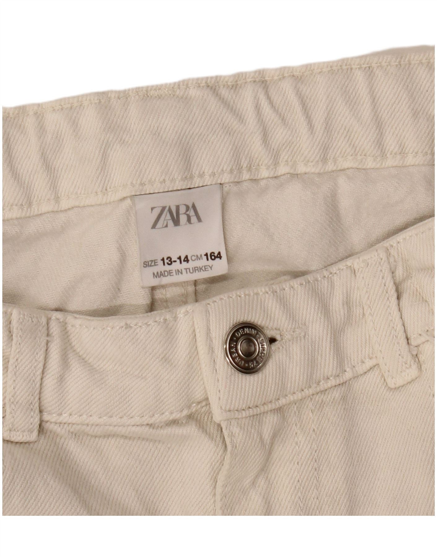 ZARA Κορίτσια ταλαιπωρημένα τζιν ψηλόμεση κωνικό 13-14 ετών W28 L22 Λευκό