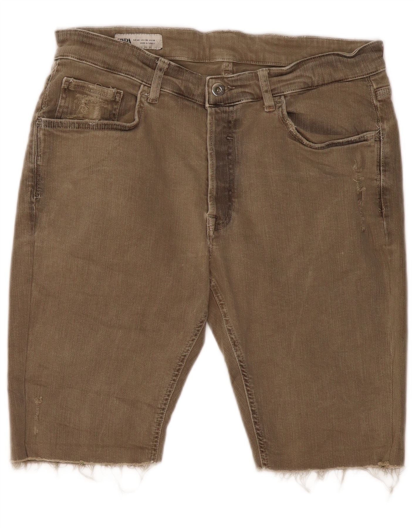 Ανδρικό τζιν σορτς ZARA ταλαιπωρημένο EU 46 XL W36 Χακί