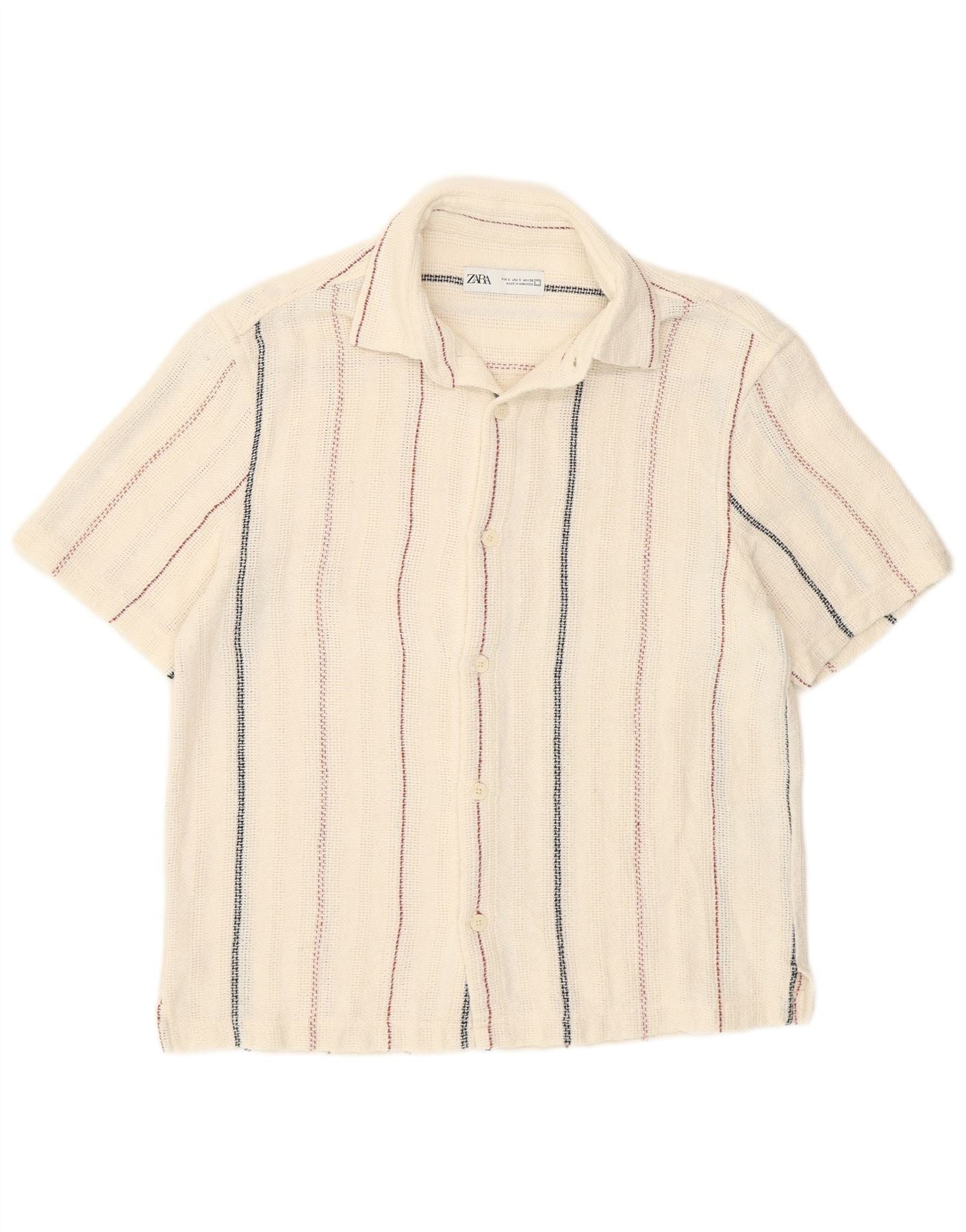 Ανδρικό κοντό μανίκι Zara See Through Πουκάμισο Μικρό Λευκό Βαμβακερό ριγέ