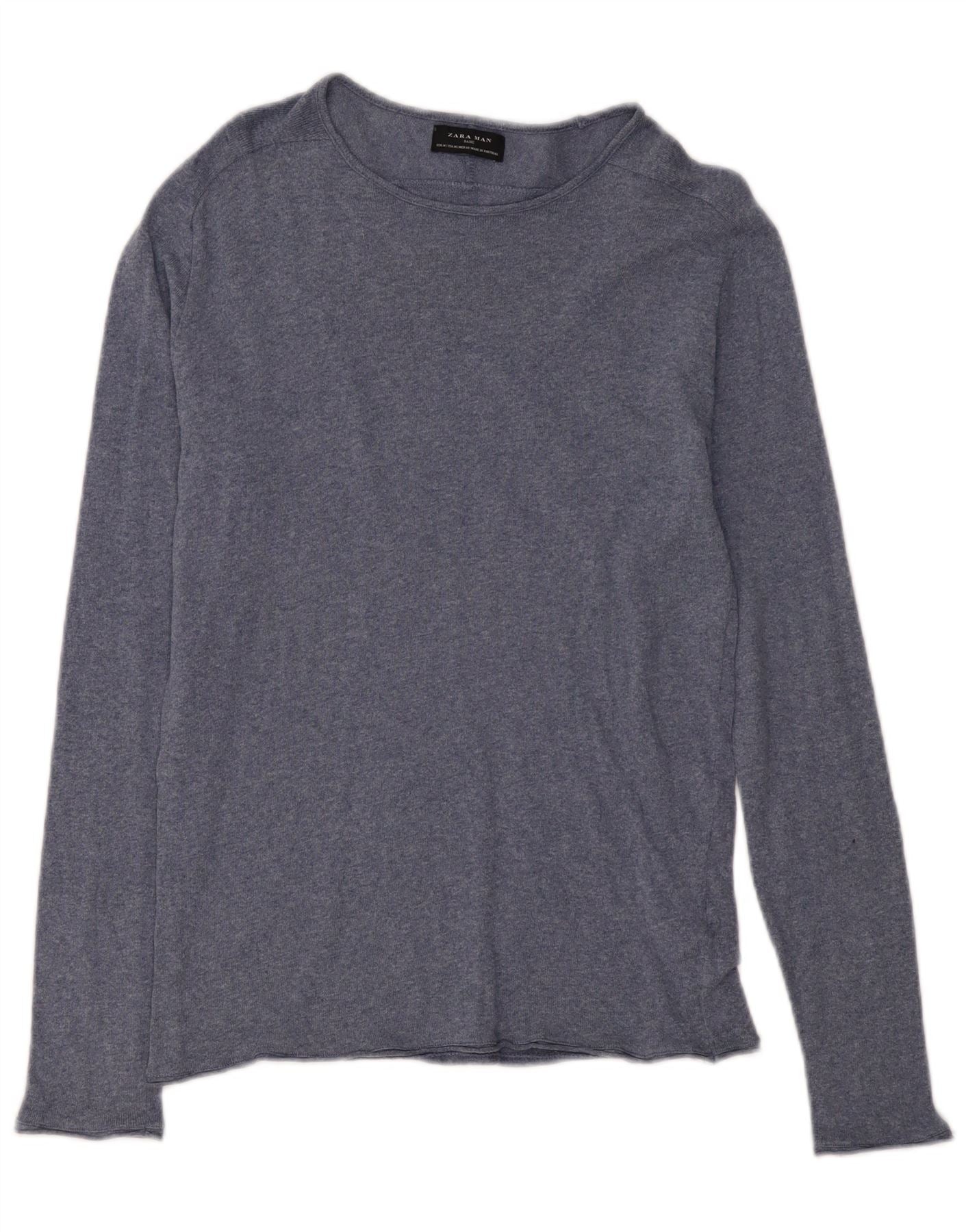 Ανδρικό τοπ ZARA μακρυμάνικο μεσαίο μπλε βαμβακερό