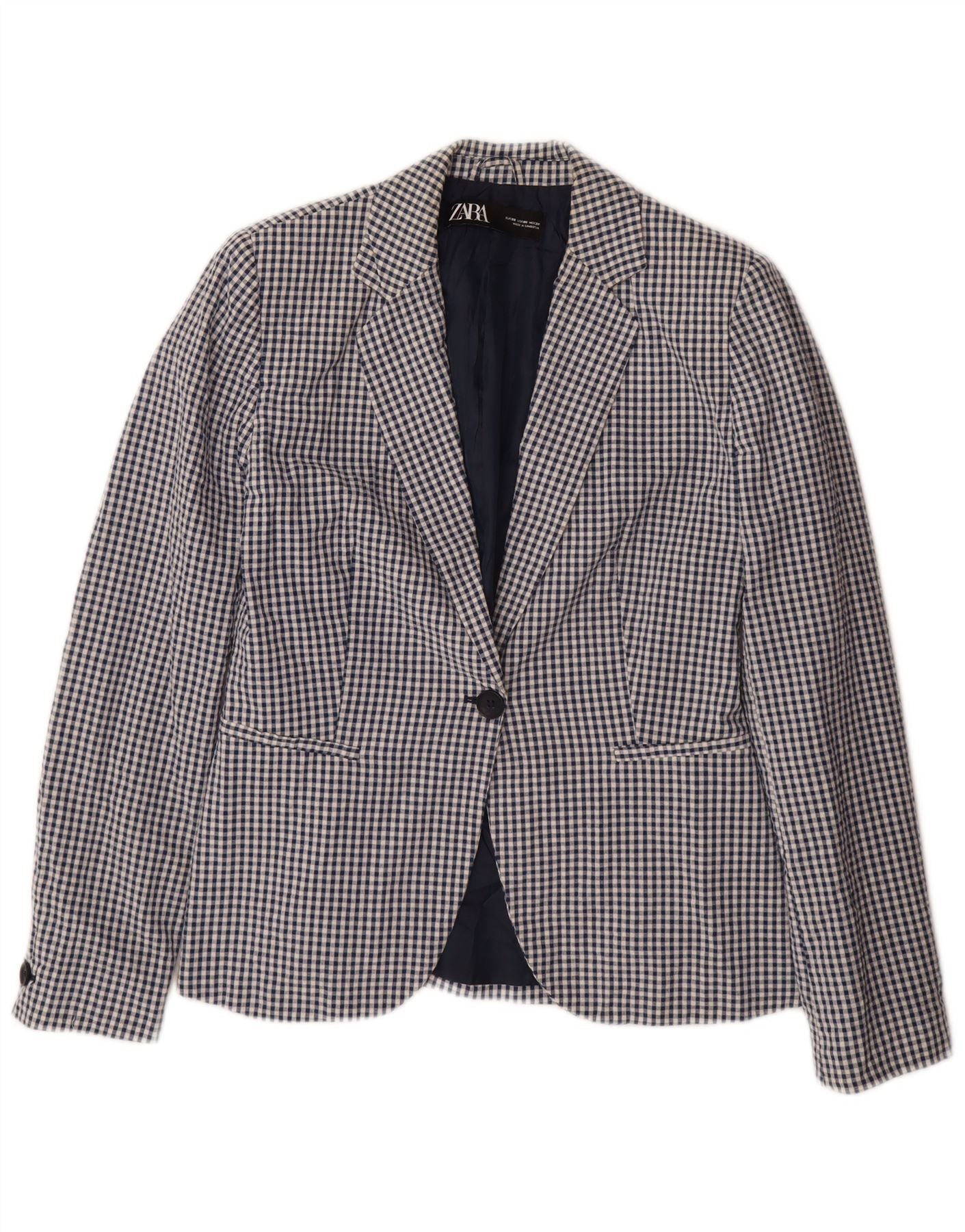 ZARA Γυναικείο τζάκετ μπλέιζερ με 1 κουμπί EU 38 Small Blue Gingham Cotton