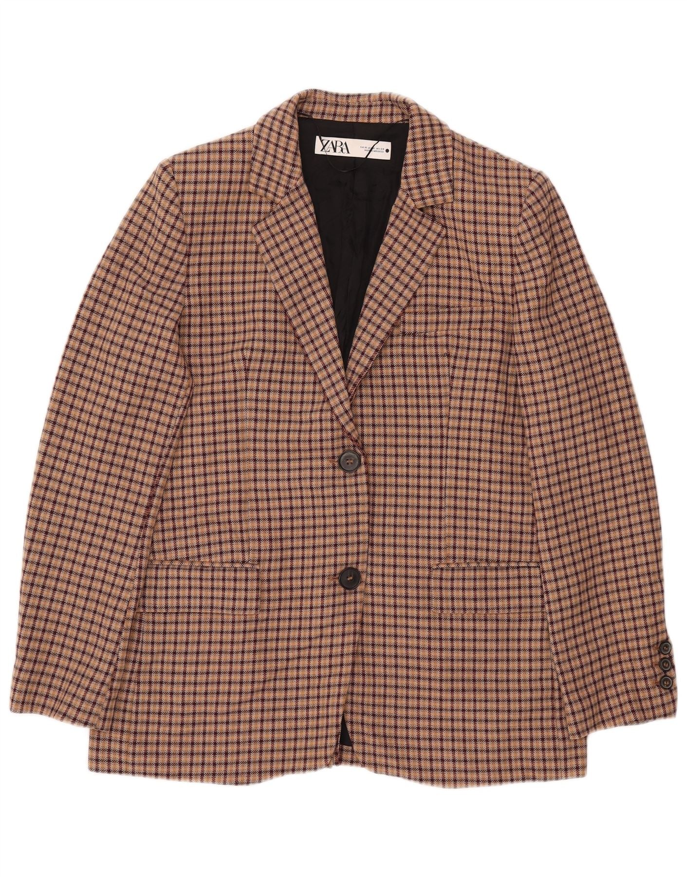 ZARA Γυναικείο μπουφάν blazer 2 κουμπιών UK 14 μεσαίου καφέ βισκόζη
