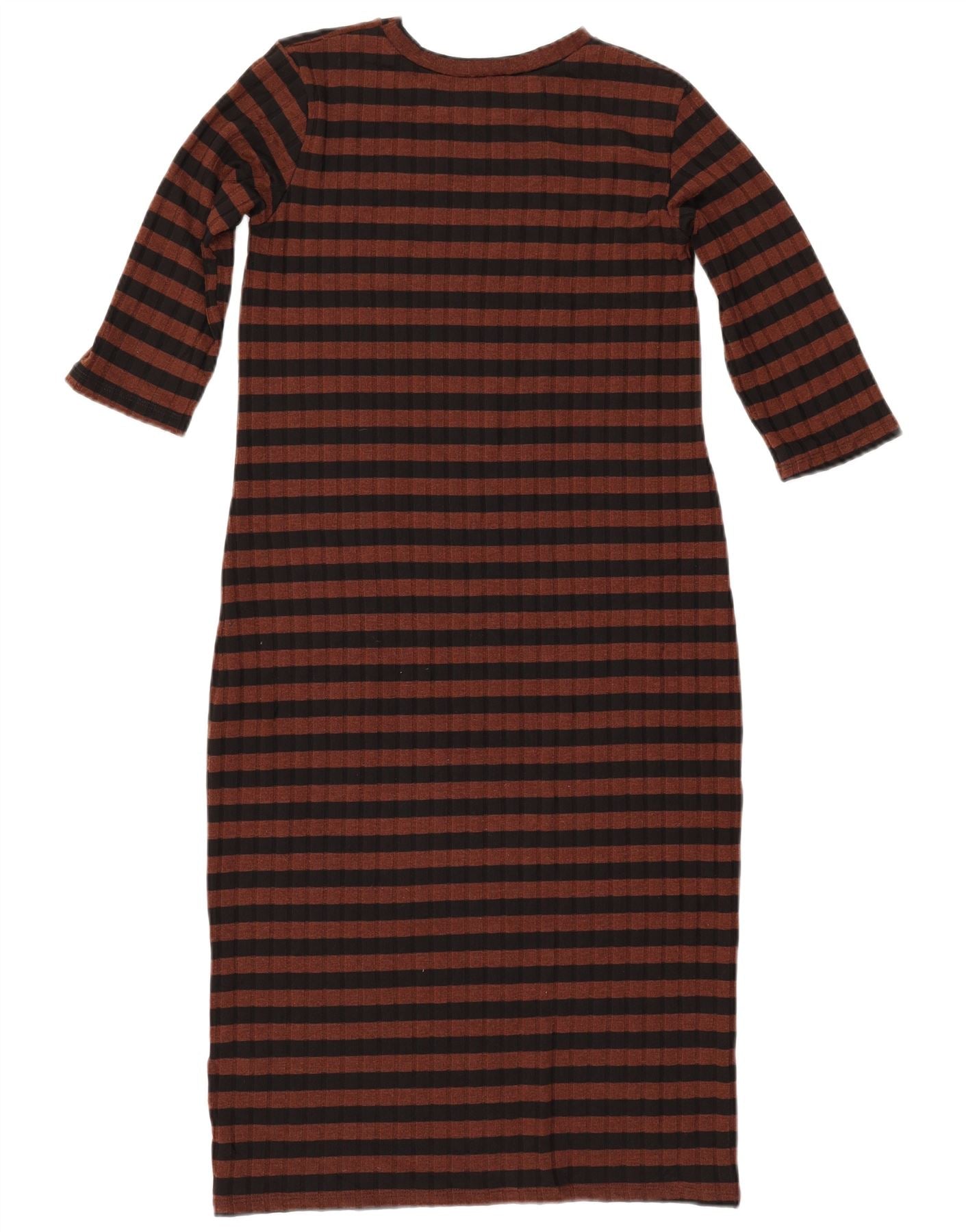 ZARA Γυναικείο φόρεμα 3/4 Bodycon UK 10 Μικρό καφέ ριγέ πολυεστέρα