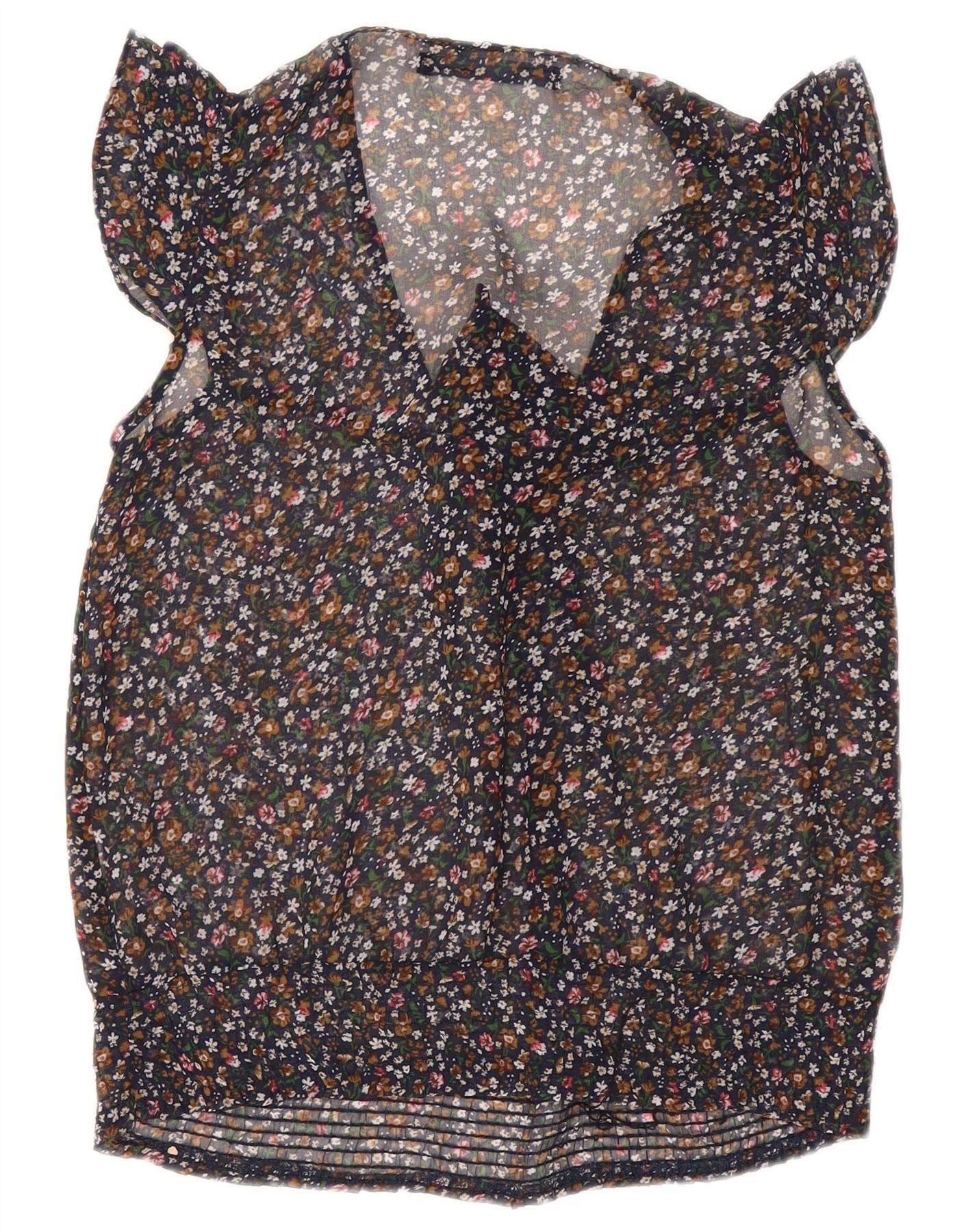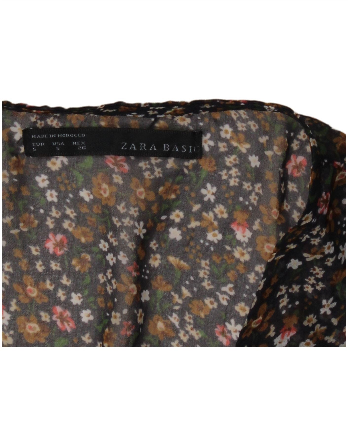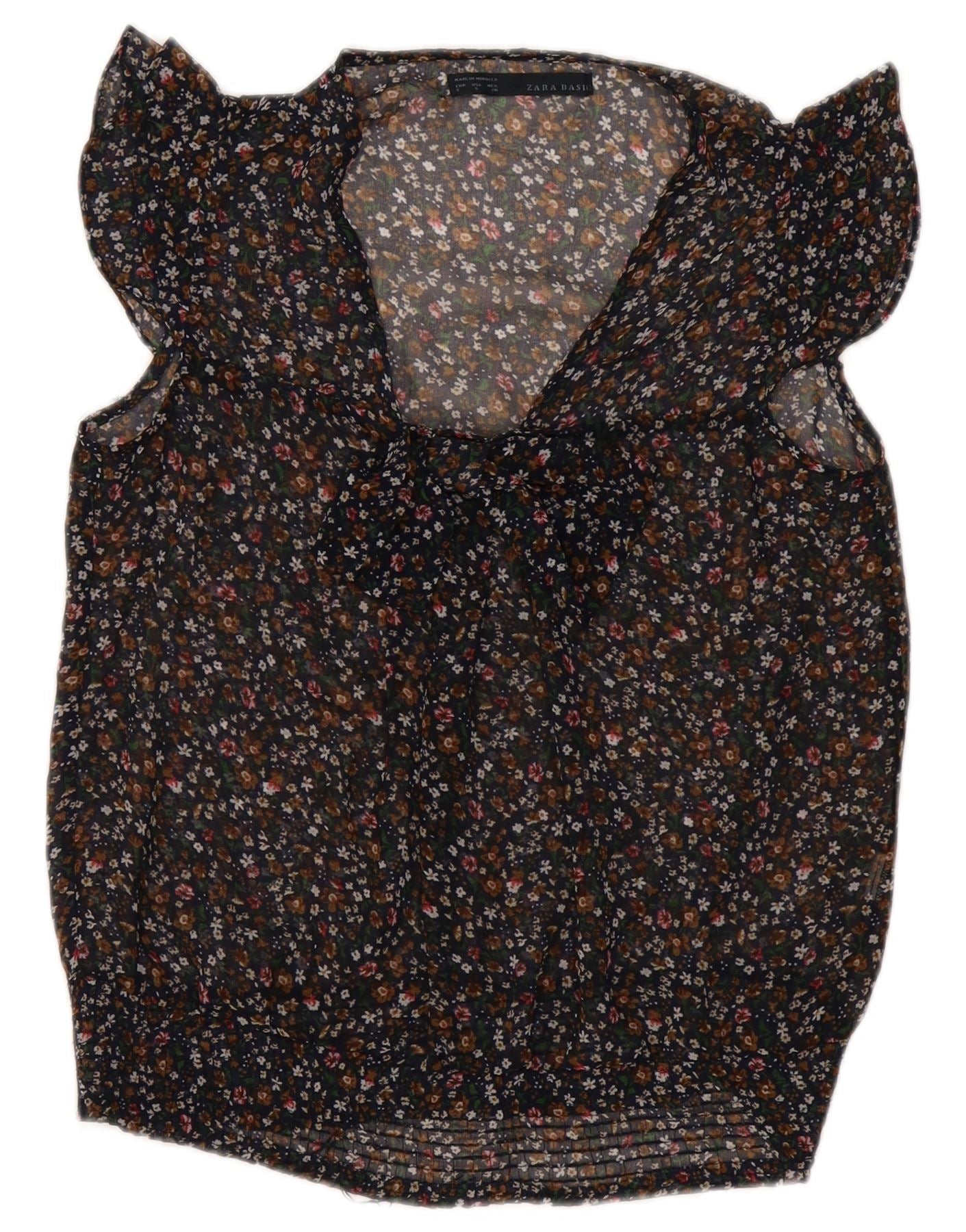 ZARA γυναικείο παπιγιόν αμάνικο See Through Top 10 UK Small Black Floral