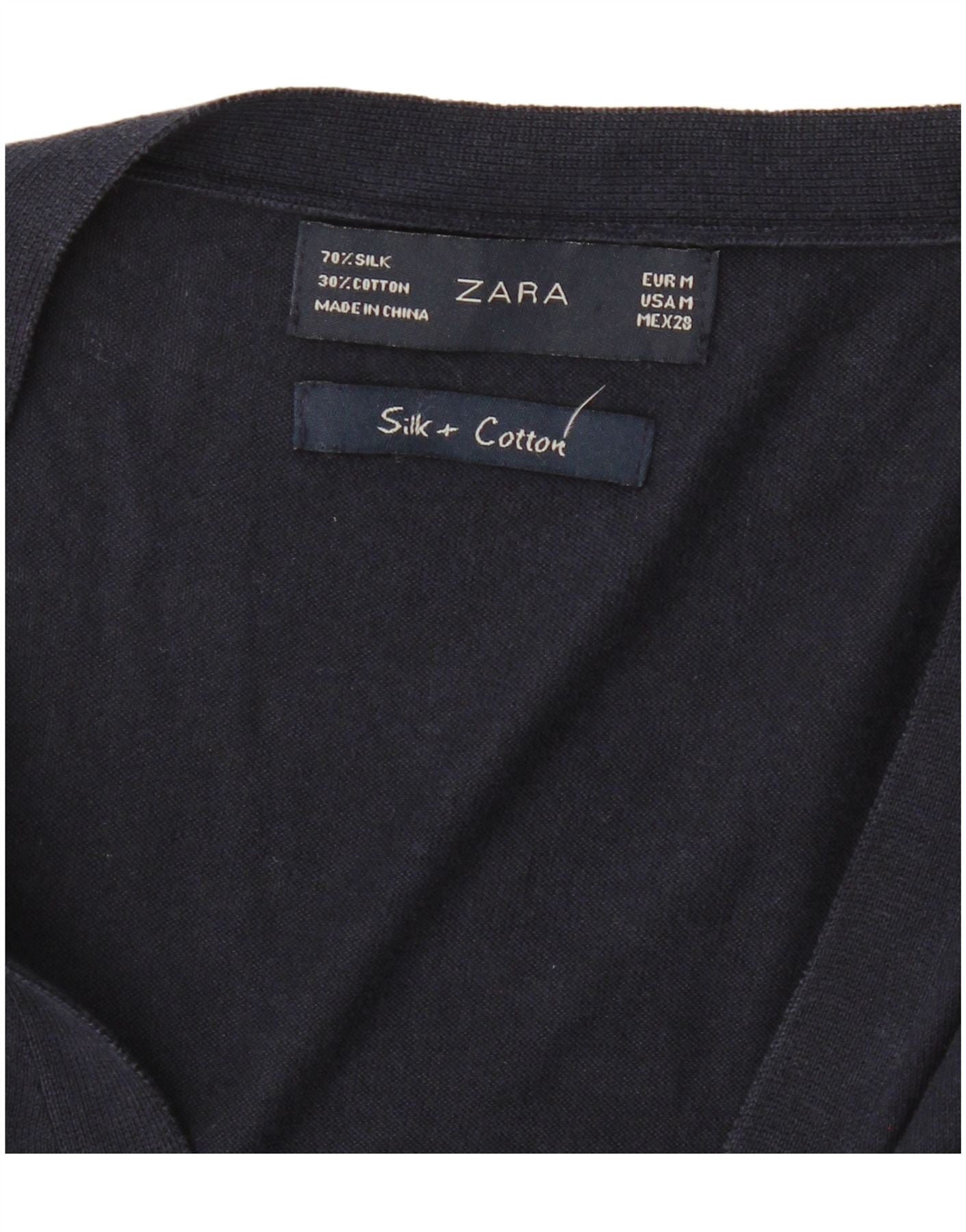 Γυναικείο πουλόβερ ZARA Ζακέτα UK 12 Medium Navy Blue Silk