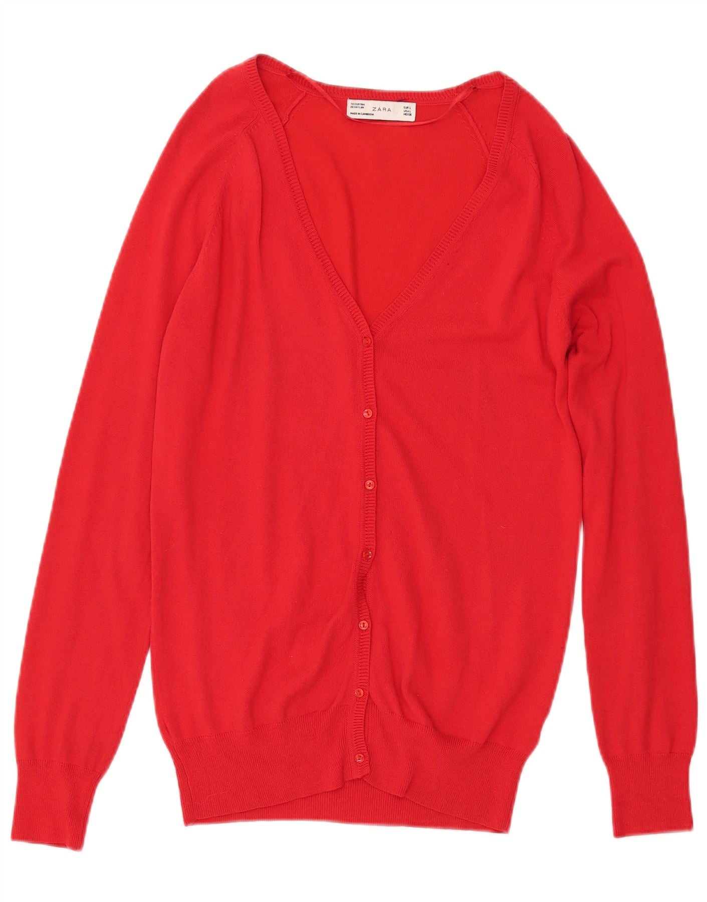 Zara Γυναικείο πουλόβερ ζακέτα UK 16 μεγάλο κόκκινο βαμβακερό