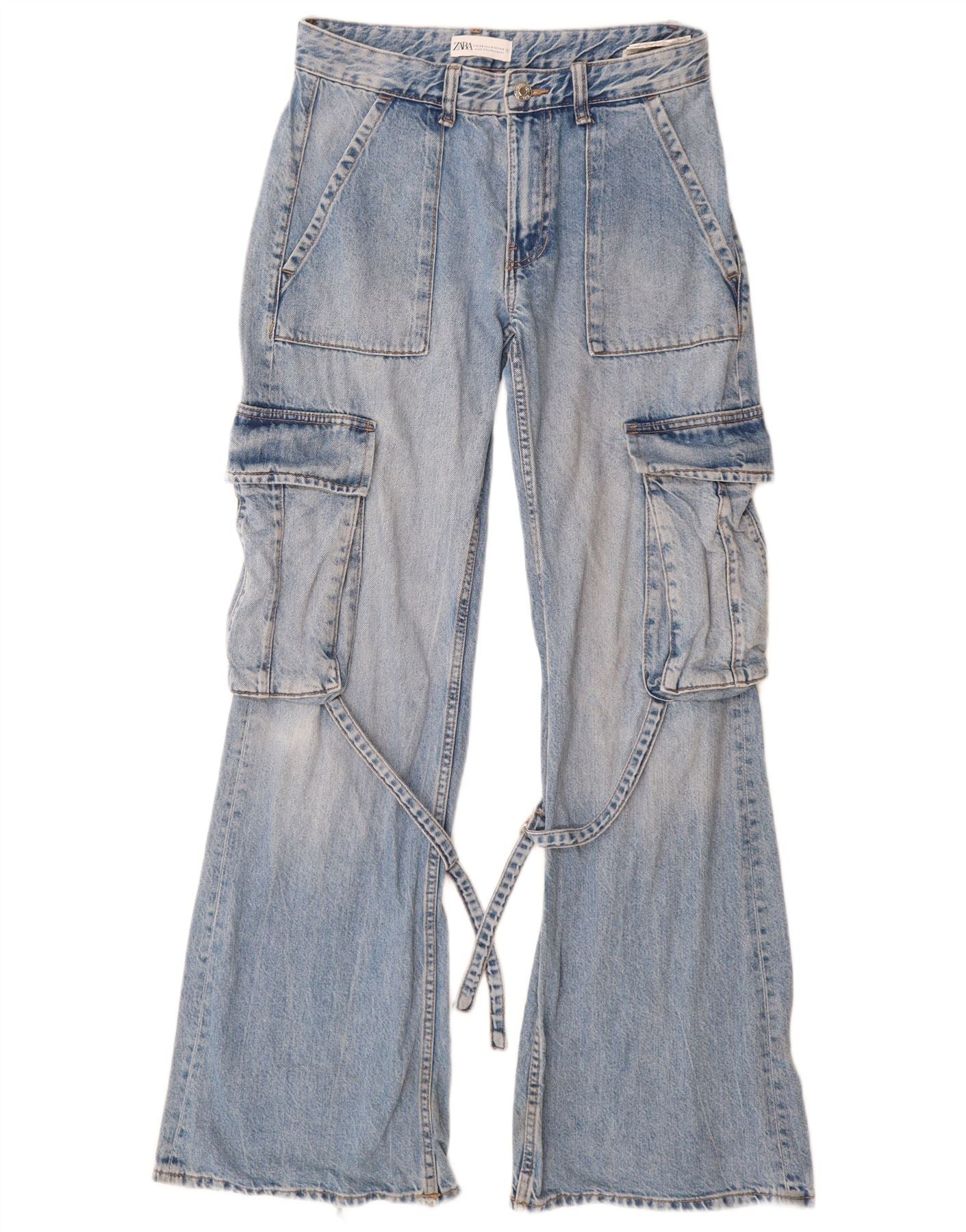 Γυναικεία τζιν ZARA Cargo Flared EU 34 2XS W24 L32 Blue Cotton