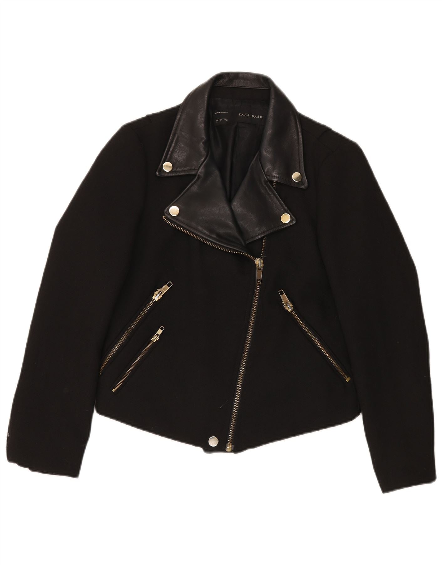 ZARA Γυναικείο Crop Biker Jacket UK 14 Large Black