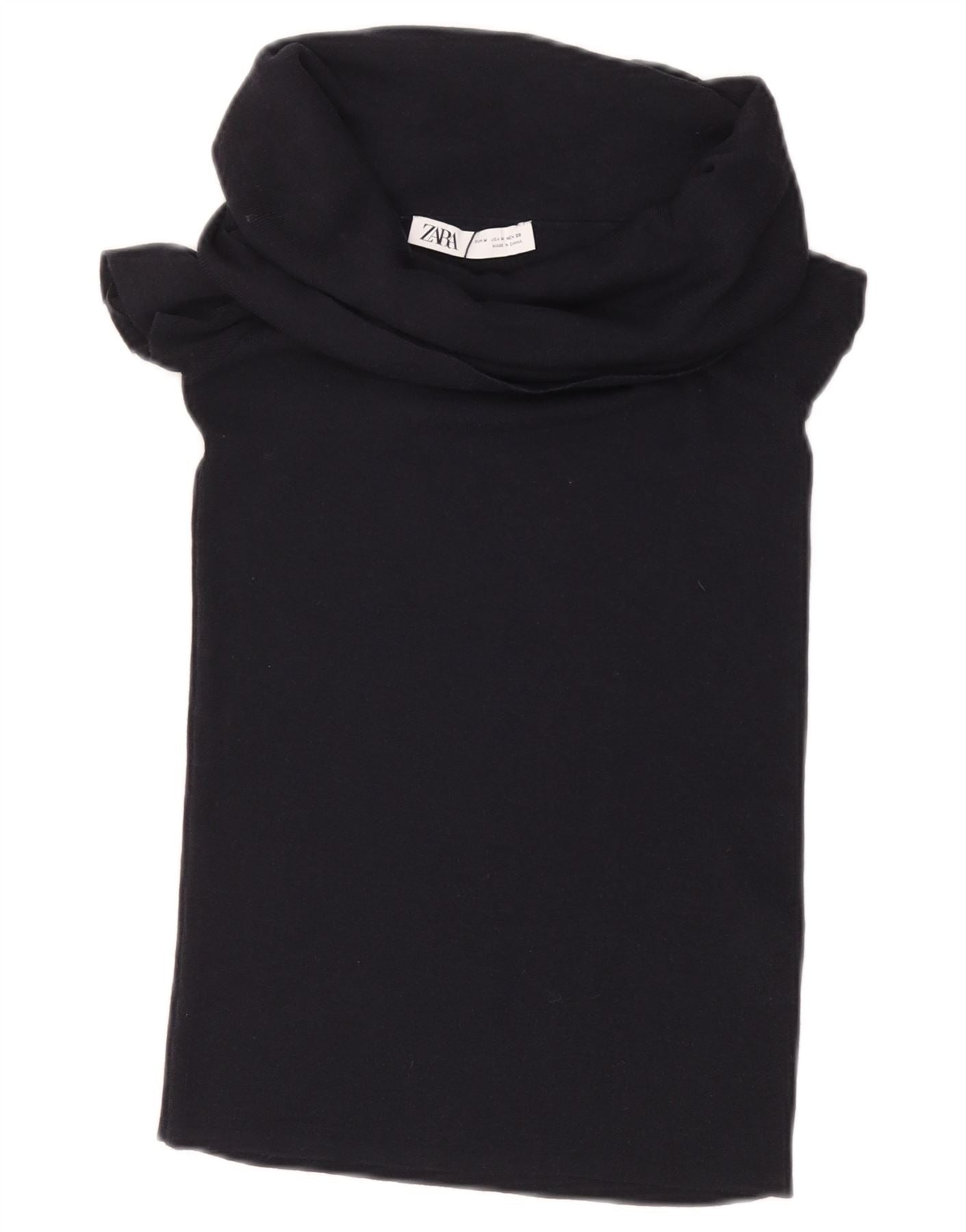 ZARA Γυναικεία Crop Μπλούζα Τοπ UK 12 Medium Black Viscose