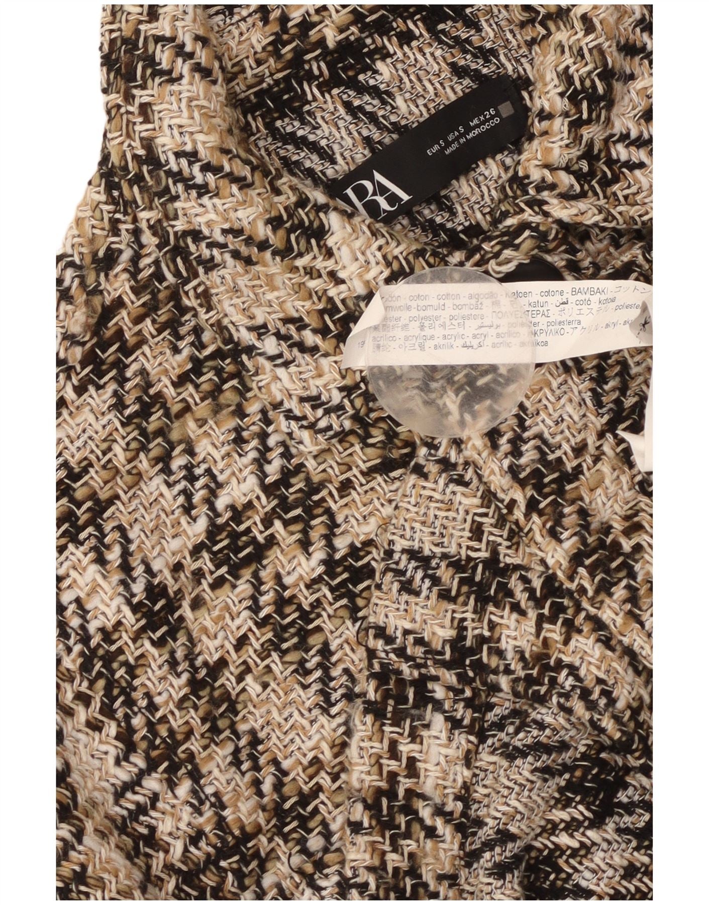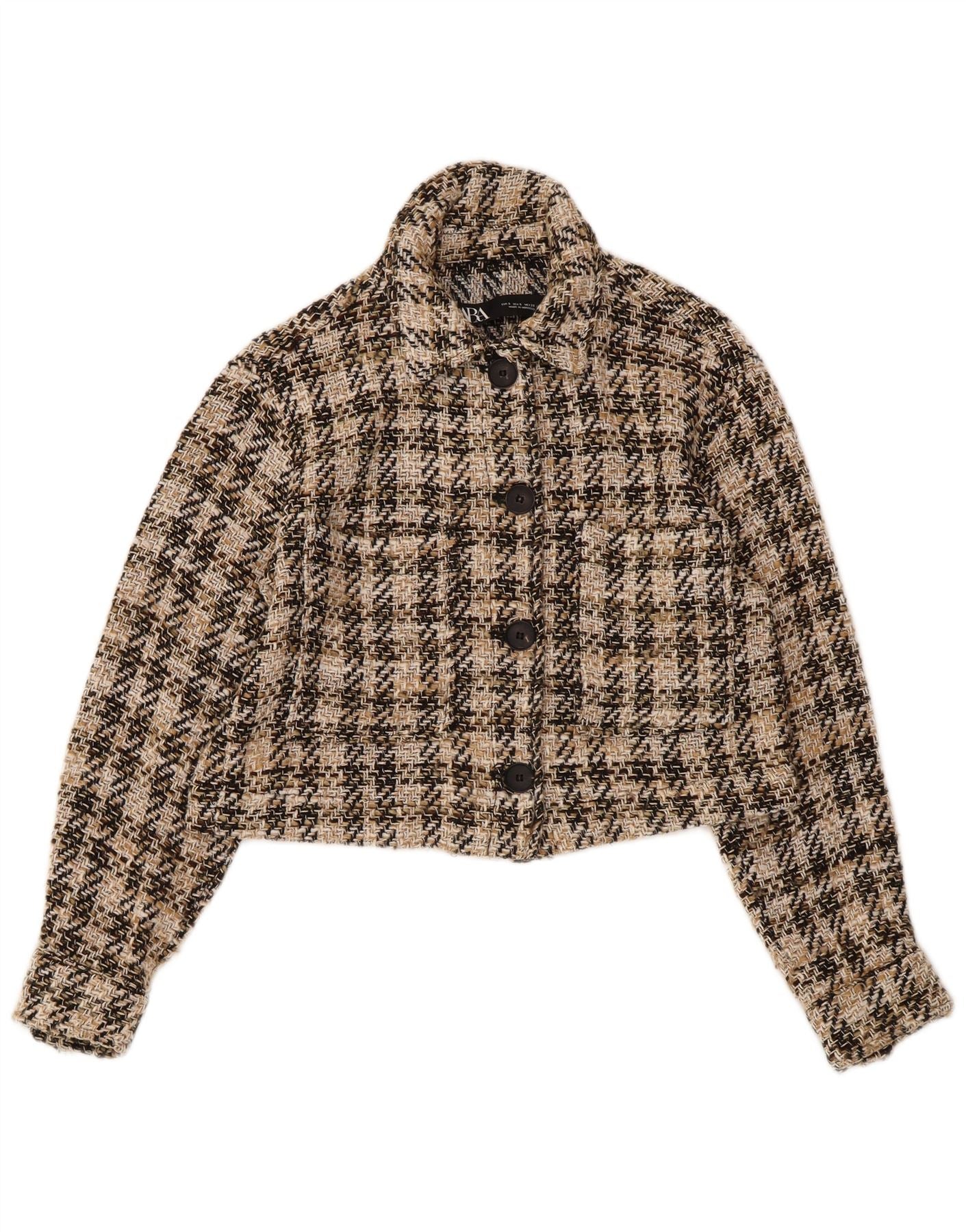 ZARA Γυναικείο Crop Bomber Jacket UK 10 Small Beige Check Cotton