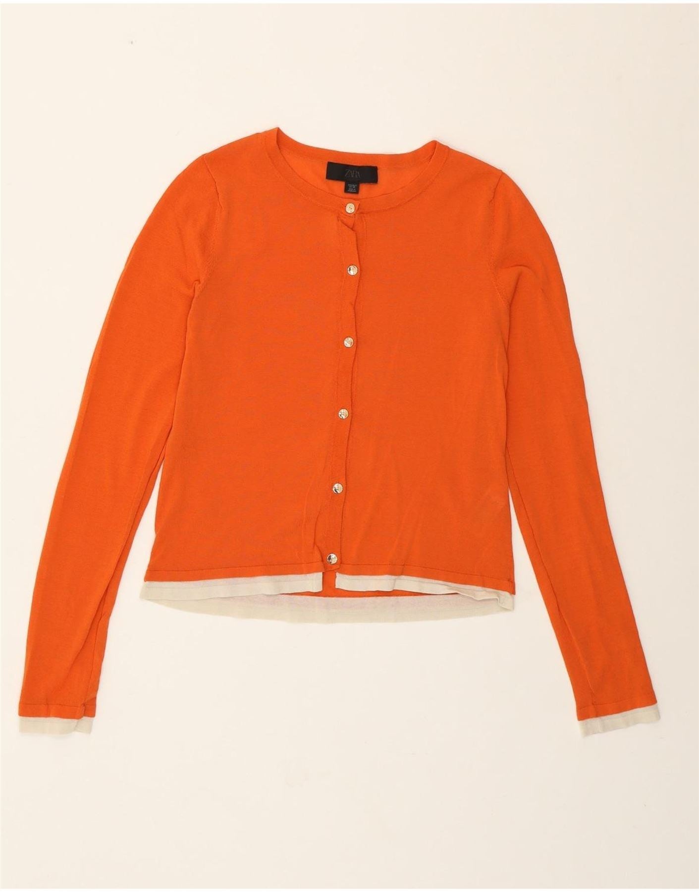 Zara Γυναικεία ζακέτα Crop UK 10 Small Orange Colourblock Cotton