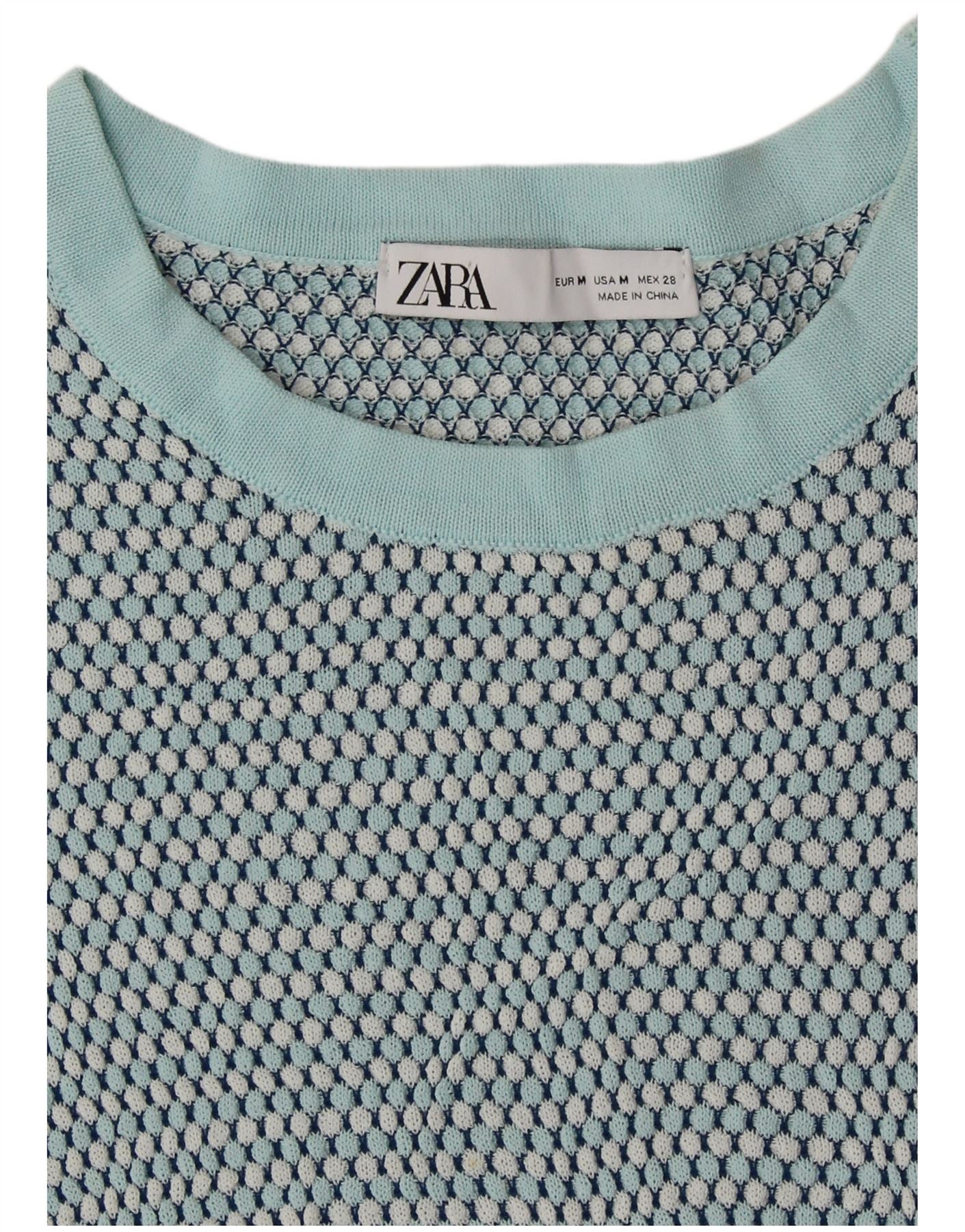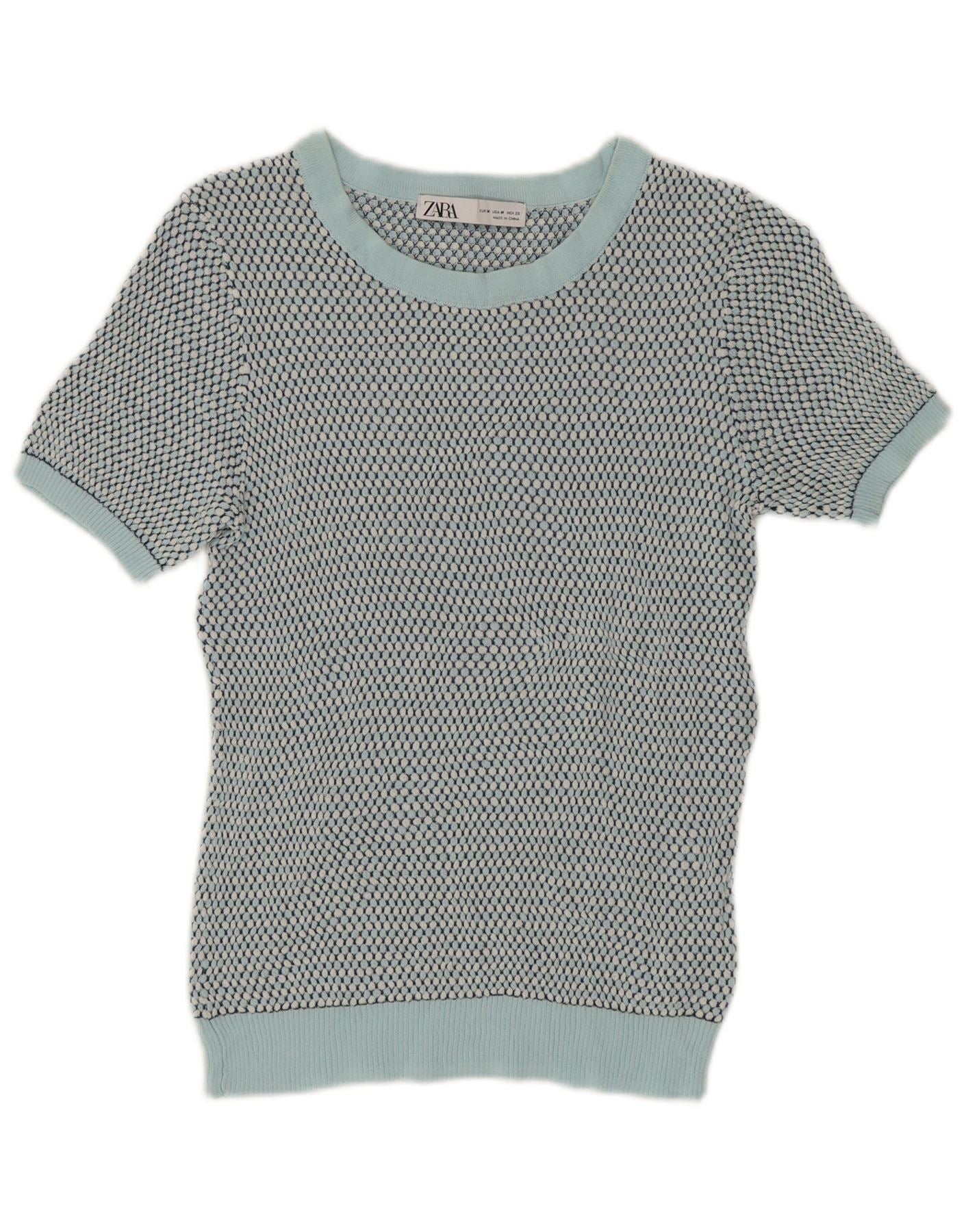 Zara Γυναικείο πουλόβερ με λαιμόκοψη Crop Crop UK 12 Medium Green Spotted