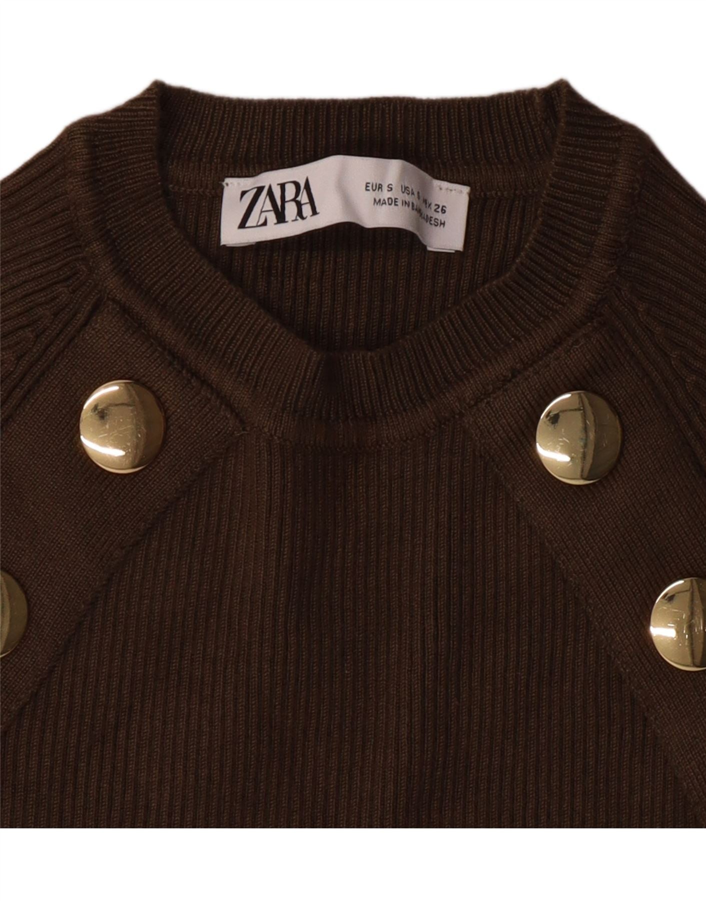 Γυναικείο πουλόβερ ZARA Crop Crop Neck Jumper UK 8 Small Khaki