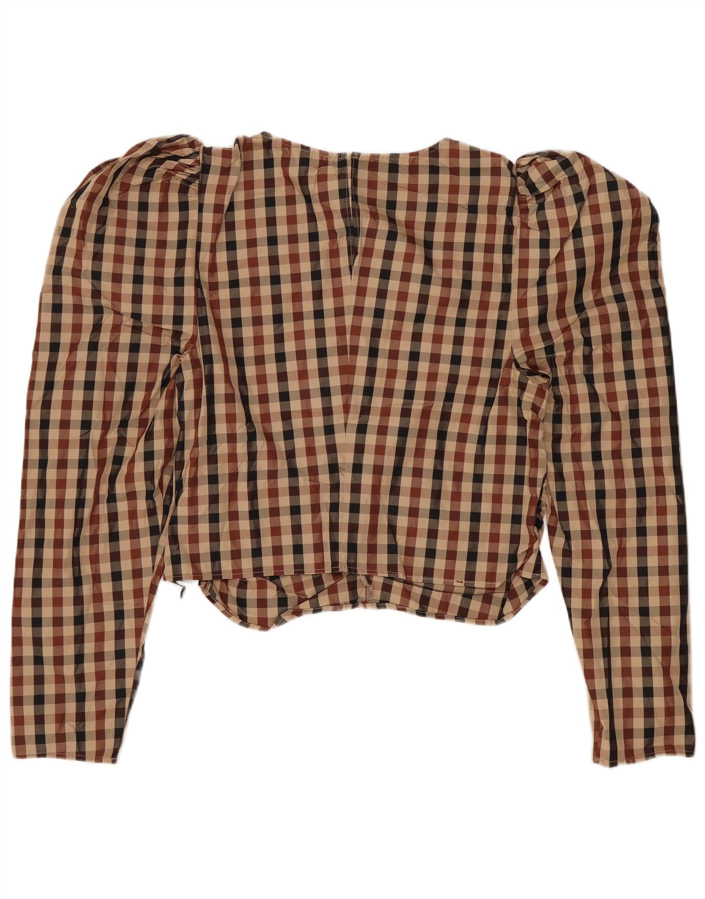 Γυναικεία Zara Crop μακρυμάνικη μπλούζα UK 10 Small Brown Gingham Polyester