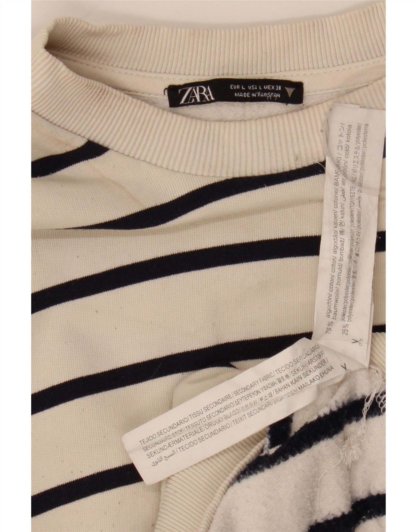 Γυναικεία φούτερ ZARA Crop Jumper UK 16 Large White ριγέ βαμβακερή