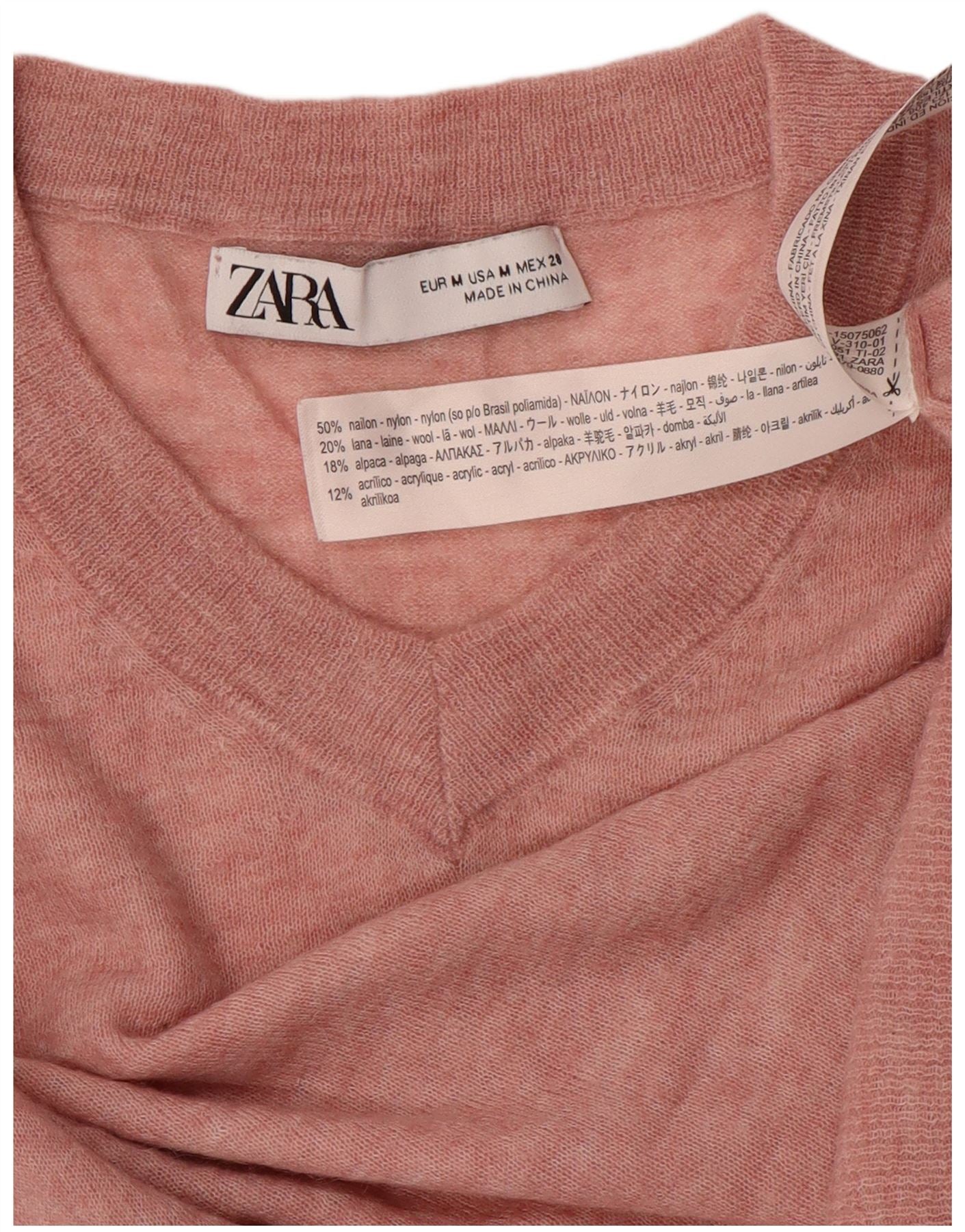 Γυναικείο πουλόβερ ZARA Crop με V λαιμόκοψη UK 12 Medium Pink Nylon