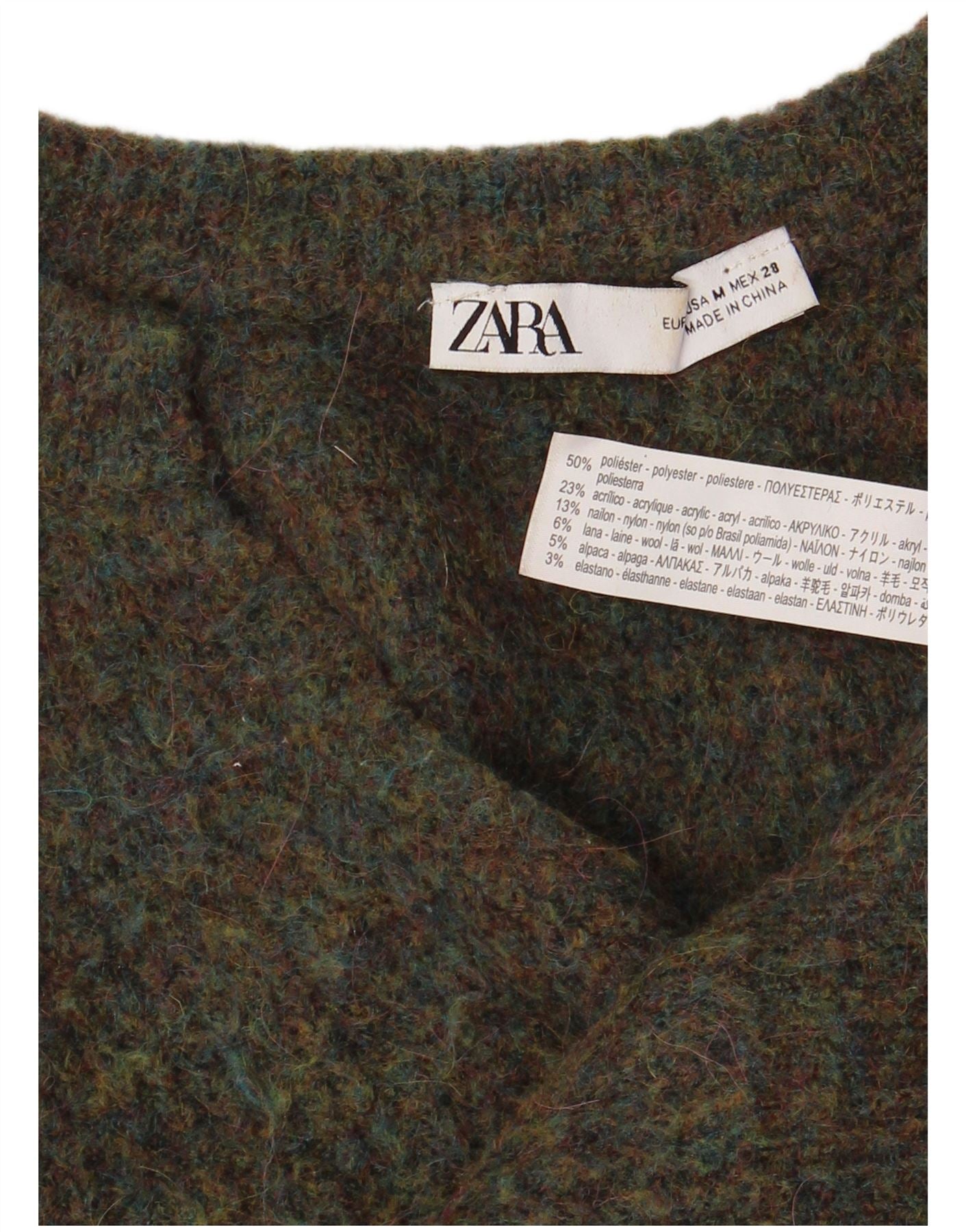 Zara γυναικείο πουλόβερ με λαιμόκοψη με V λαιμόκοψη UK 14 Medium Khaki Flecked