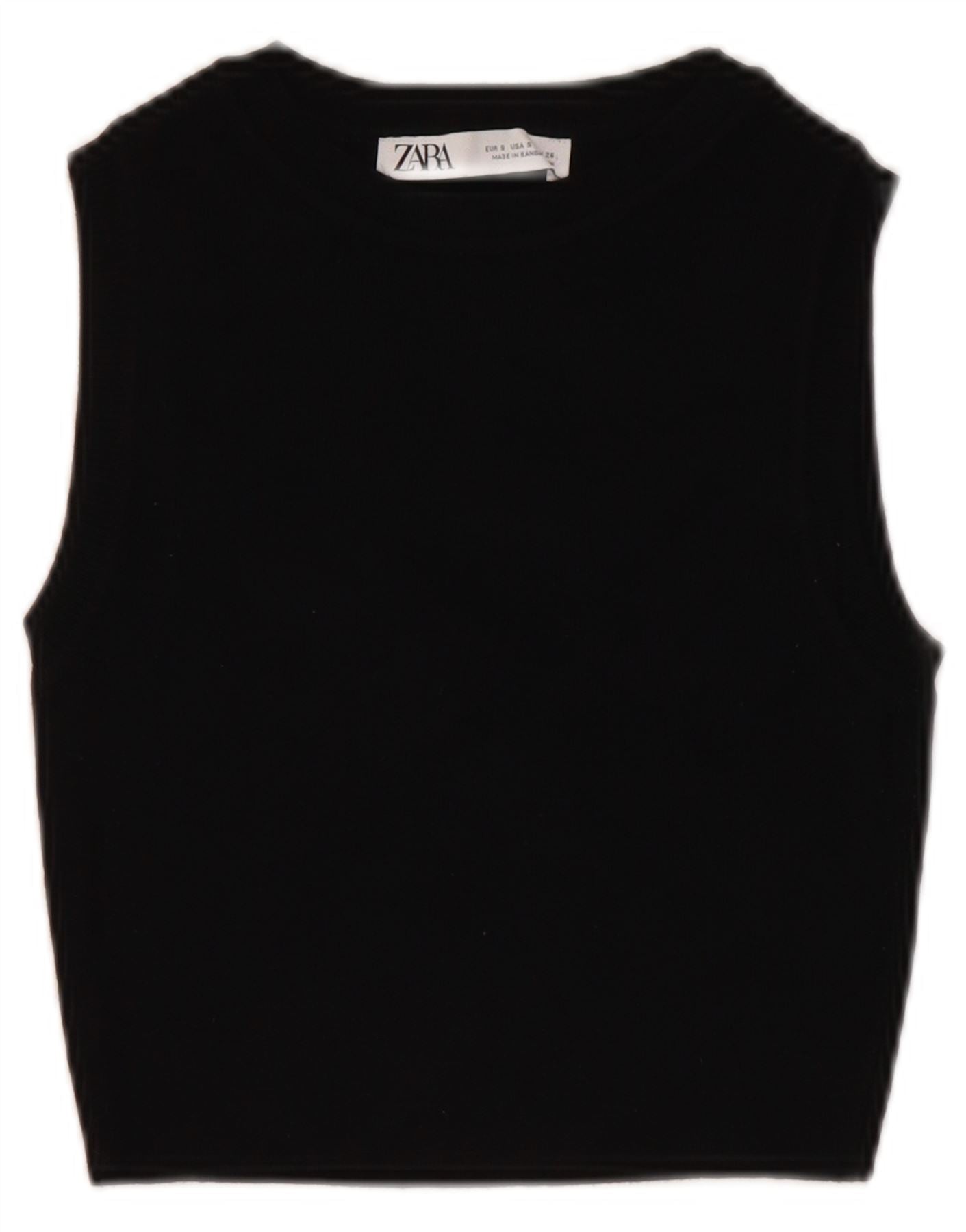 ZARA Γυναικείο Crop Vest Tank Top UK 8 Small Black Viscose