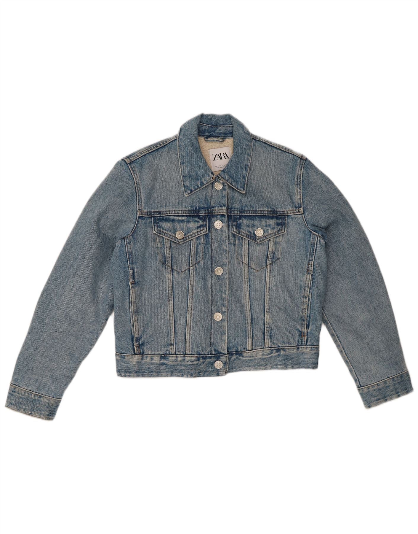 ZARA Γυναικείο Τζιν Μπουφάν Sherpa Crop UK 10 Small Blue Cotton