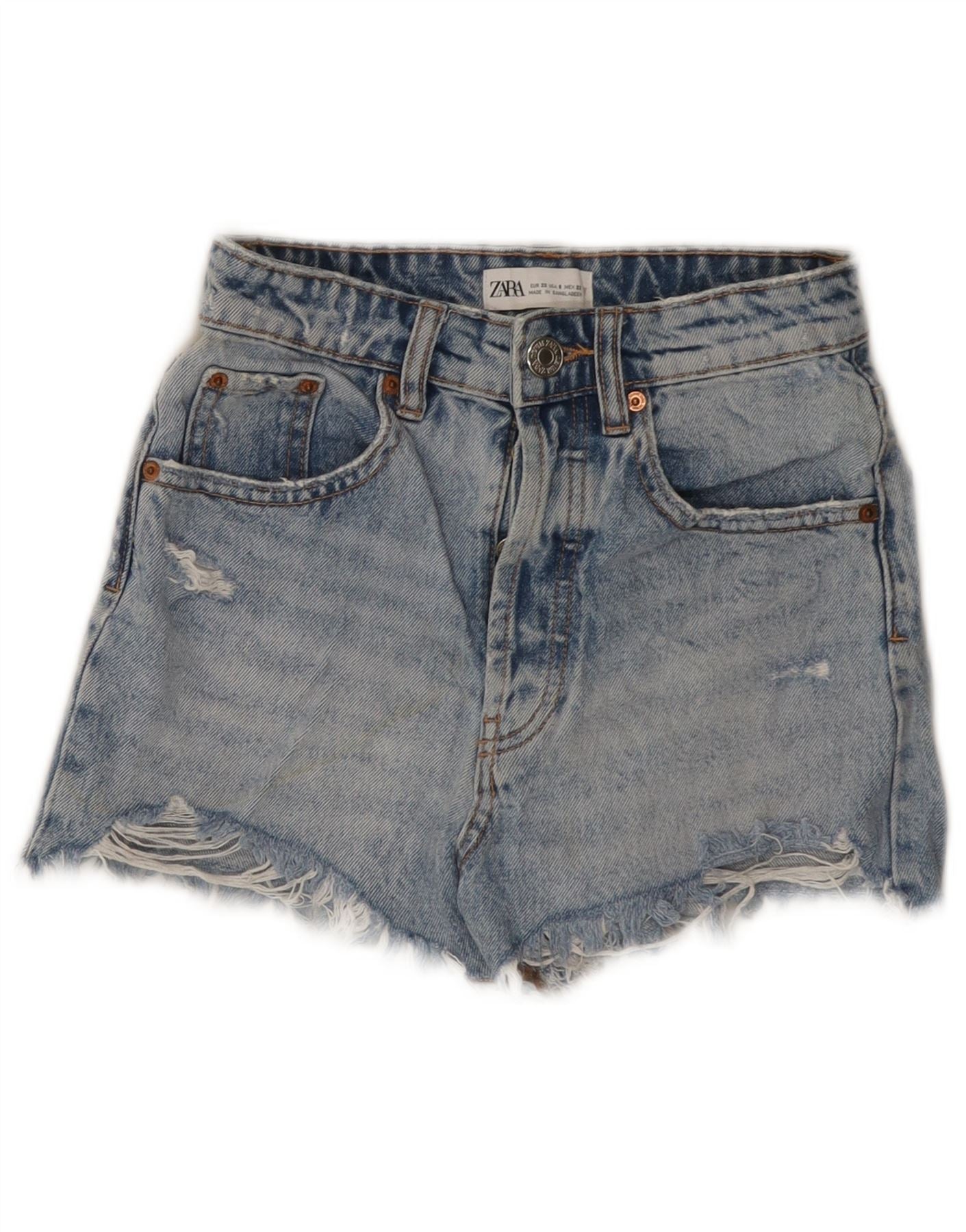 Γυναικείο τζιν σορτς ZARA ταλαιπωρημένο US 0 XS W22 Μπλε