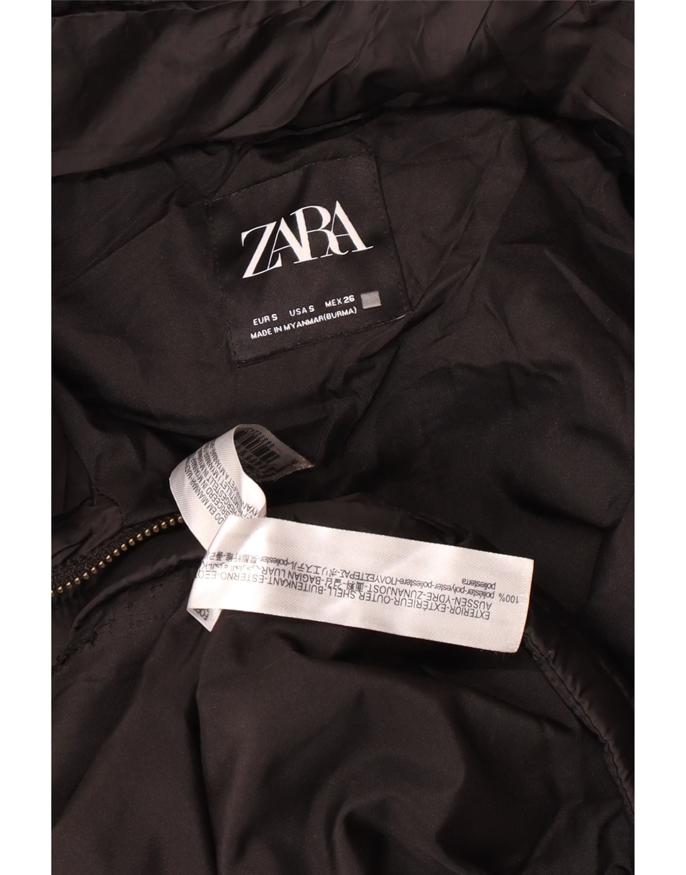 Γυναικείο μπουφάν ZARA με κουκούλα με επένδυση UK 10 Small Black Polyester